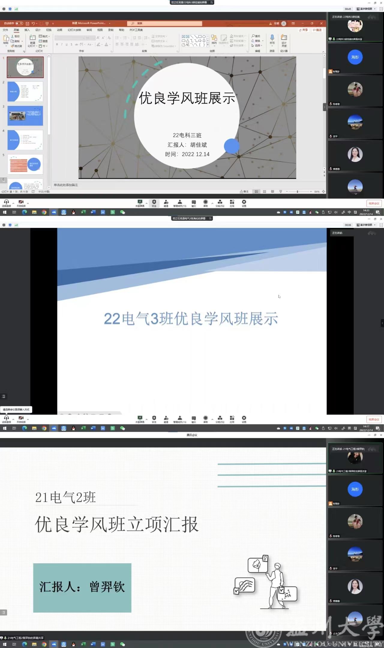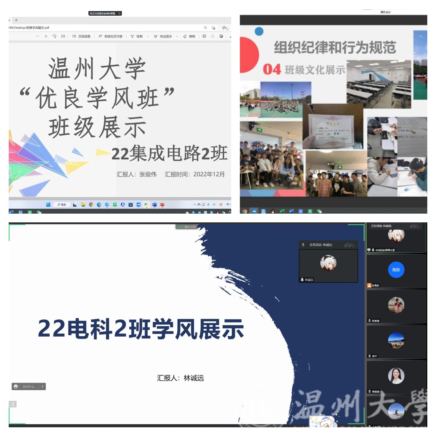 为进一步加强校风学风建设,树立优良学风,加大优秀班级的示范作用,beat365官网于2022年12月14日在线上举办2022/2023学年“优良学风班”立项申请评选活动。学院本科生评选委员会委员及申请立项的9个班级出席了本次活动。