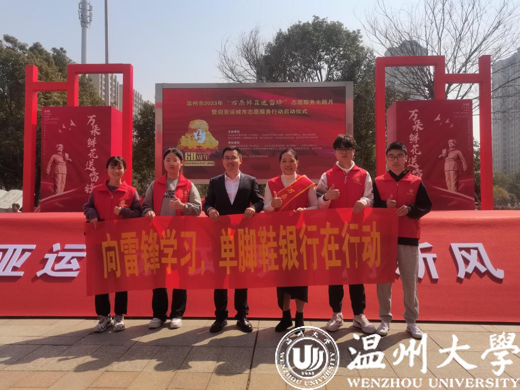 3月5日上午,温州市“万朵鲜花送雷锋”志愿服务主题月暨迎亚运城市志愿服务行动启动仪式在龙湾区新时代文明实践活动中心举行,beat365官网单脚鞋银行志愿服务队参加了本次现场活动并在志愿服务集市中为群众开展服务。