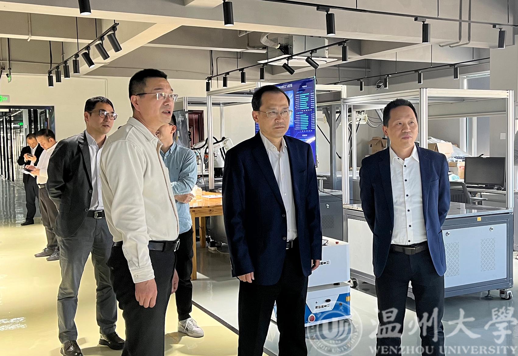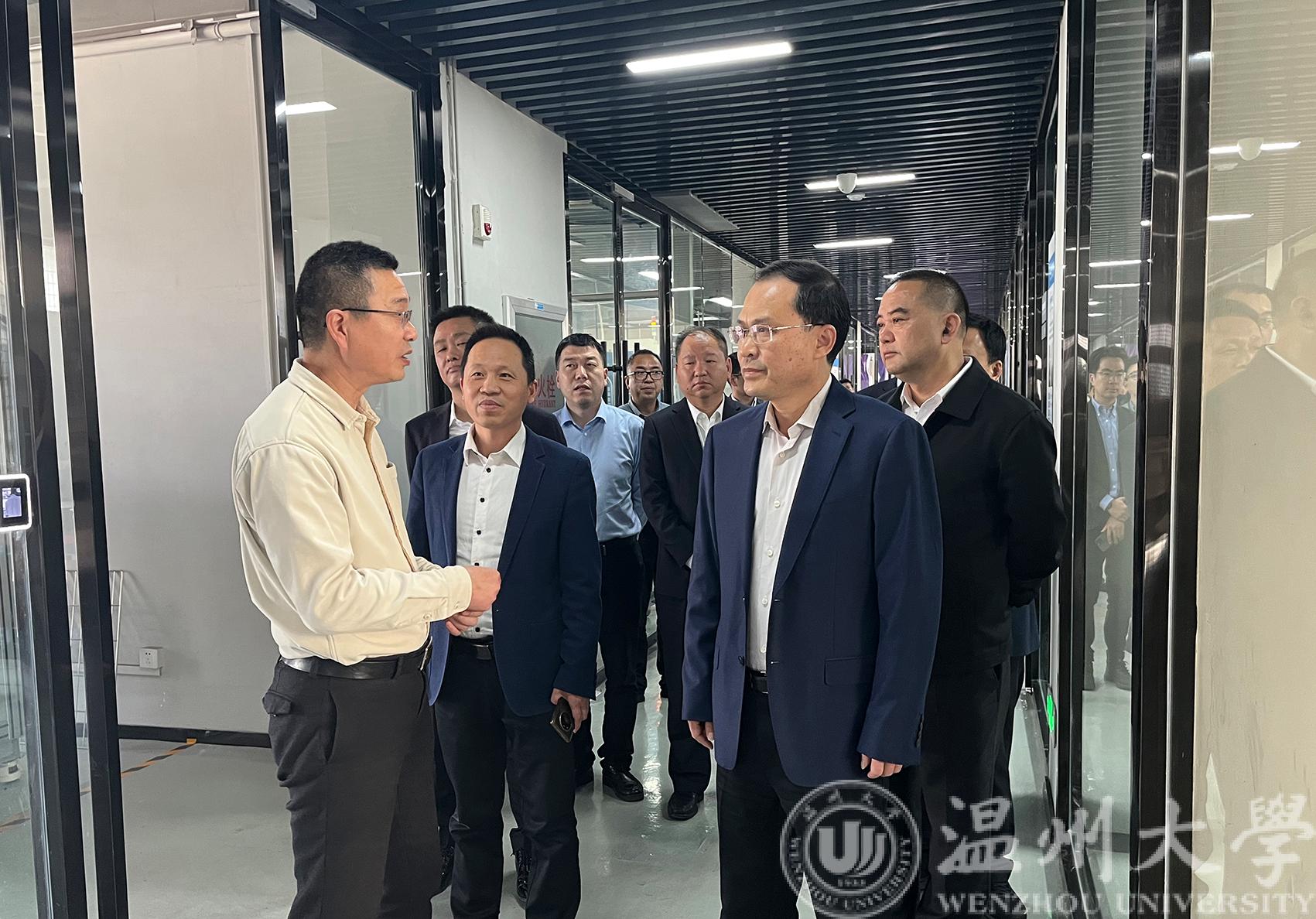 3月10日,温州市政协主席陈作荣一行来乐清调研科技创新和政协工作,莅临beat365在线唯一官网乐清工业研究院实地考察平台项目建设情况,beat365在线唯一官网副校长王舜、温州市科技局副局长朱勇敏、乐清市副市长叶序峰等陪同,研究院院长林振权、副院长吴自然等热情接待并汇报科技创新及服务企业工作。