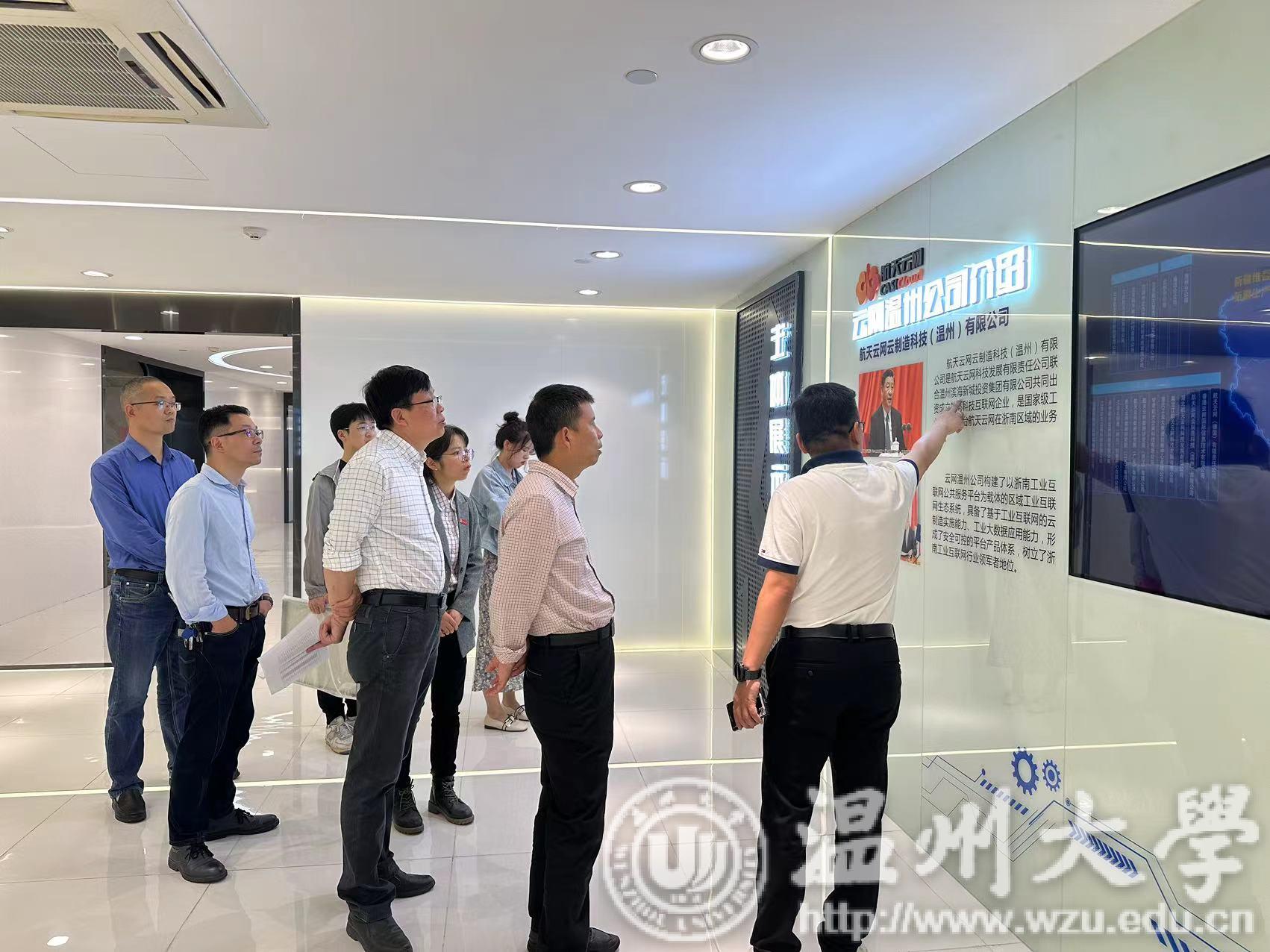 航天云网云制造科技(温州)有限公司书记、副总经理谭立新,副总经理黄勇达对beat365官网一行来企考察交流、深化校企共建合作表示热烈欢迎,并带领beat365官网人员进行公司参观,详细介绍公司的历史沿革及在相关领域取得的成绩。