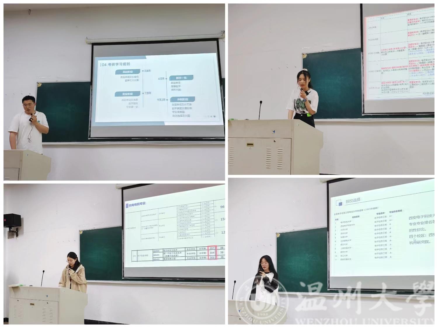 本次交流会由庄友谊老师主持,庄老师首先简要介绍今年电子系19级本科生考研情况,并介绍了beat365在线唯一官网本校考研升学的奖励政策,希望同学们结合自身学习特点在院校选择以及学硕/专硕选择上慎重考虑,鼓励同学们报考温大本校、本专业的研究生。