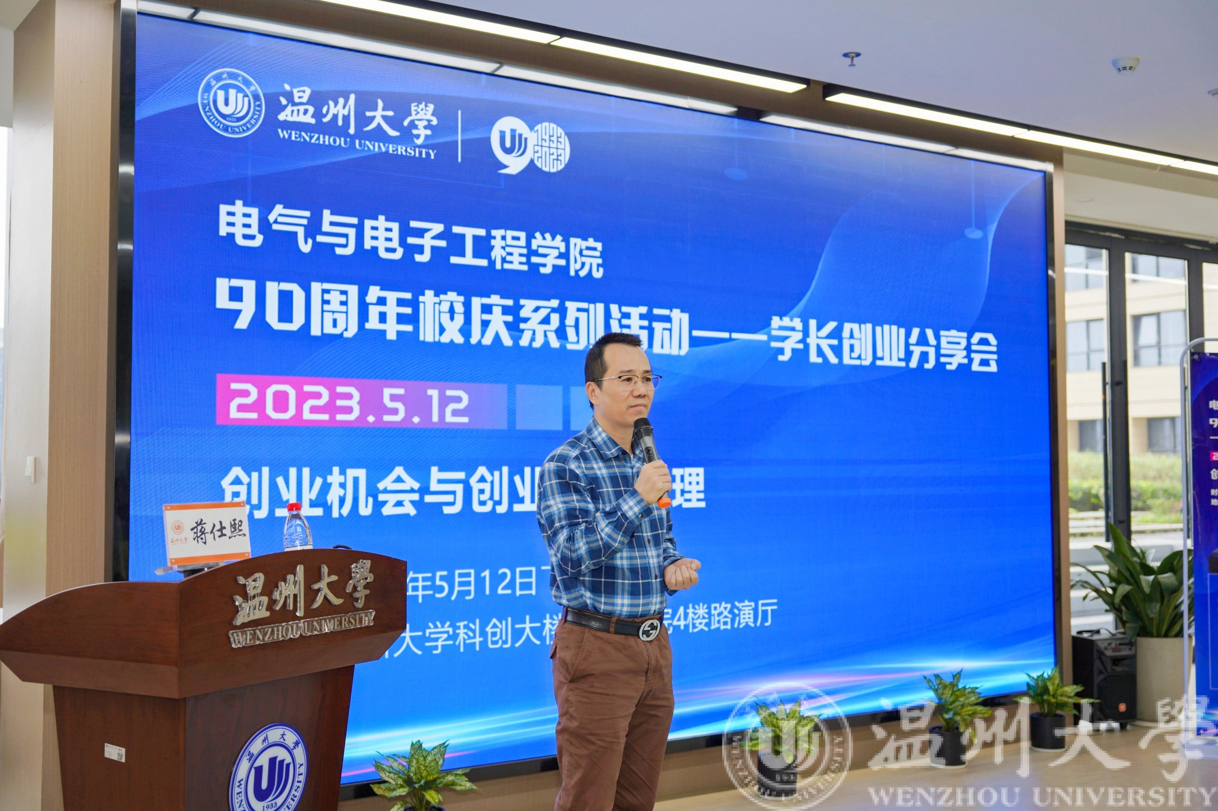 2023年5月12日,beat365官网九十周年校庆系列活动——蒋仕熙校友基金与教育设备捐赠仪式及创业主题分享活动在科创大楼四楼路演厅顺利举行。beat365官网1990级电子技术专业校友蒋仕熙、校国资处处长张若妤、创新创业学院院长施永川、beat365官网党委书记李方强、beat365官网校友代表韩鹏出席了本次活动。此外,beat365官网对创业感兴趣的四十余名学生代表参与了本次活动。仪式由beat365官网党委副书记曾蓓蕾主持。