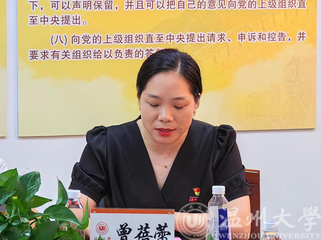 大会在庄严的国歌声中拉开帷幕,曾蓓蕾副书记在会上致辞,她向全体毕业生党员提出三点希望,希望党员们离开学院后,要争做学习型党员、实干型党员和担当型党员;随后省优秀毕业生、学生党员叶依秀代表全体毕业生党员表示会牢记为共产主义奋斗终身的铮铮誓言,始终艰苦奋斗、努力拼搏,为实现中华民族伟大复兴奉献自己的力量。