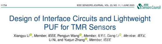 [2]Li Xiangyu, Wang Pengjun, Li Gang, Zhang Yuejun. Design of Interface Circuits and Lightweight PUF for TMR Sensors, IEEE Sensors Journal, 2023, 23(11), 11754-11761.