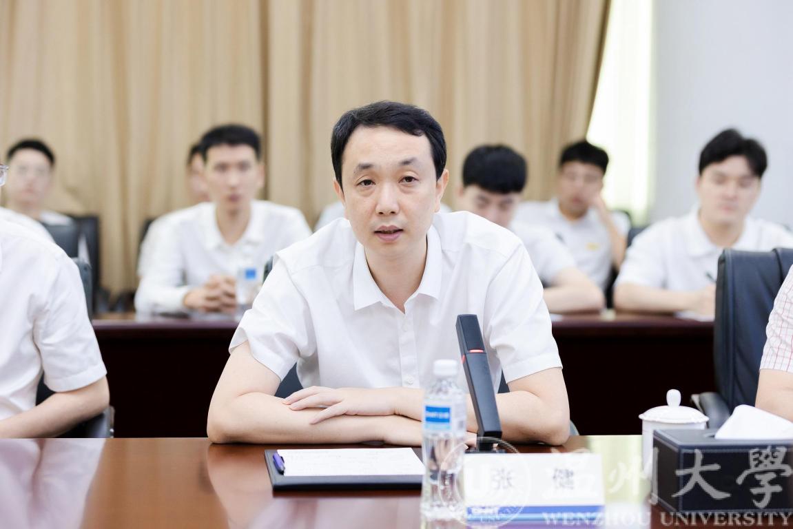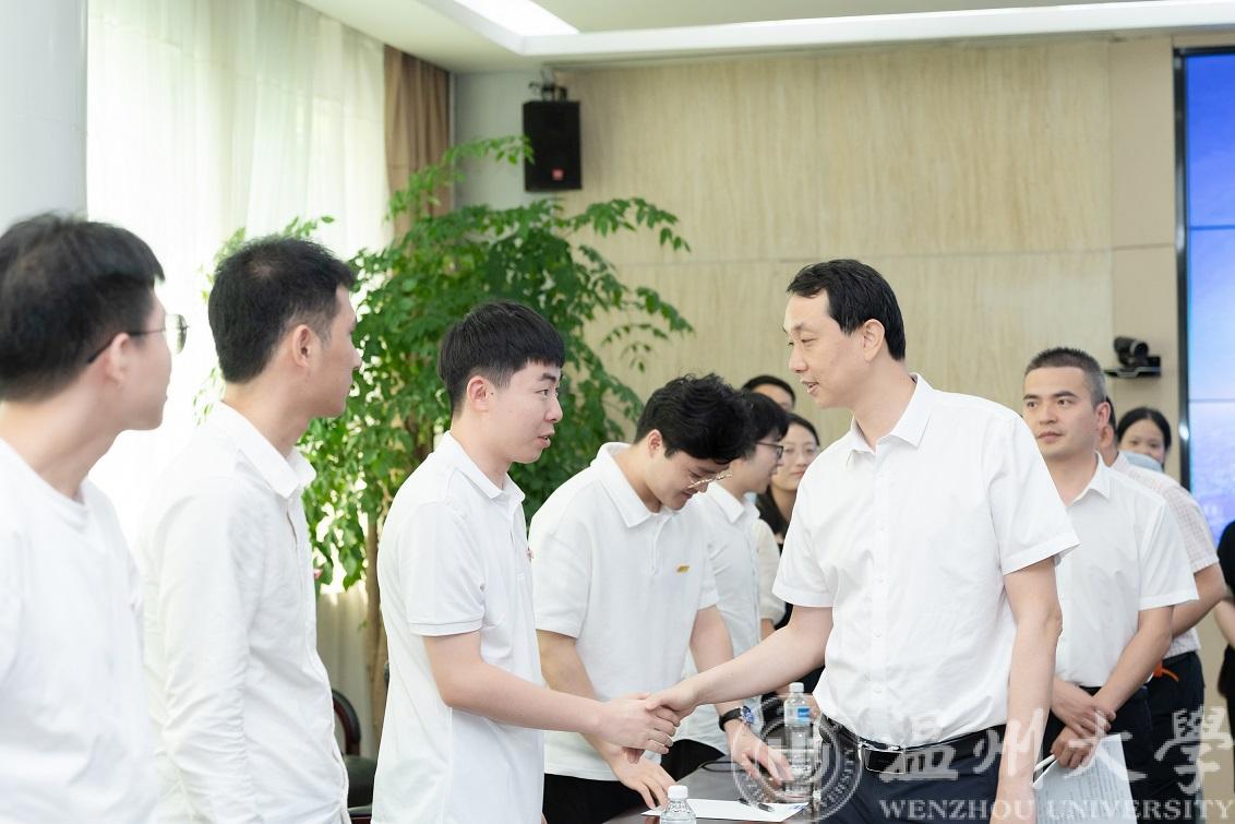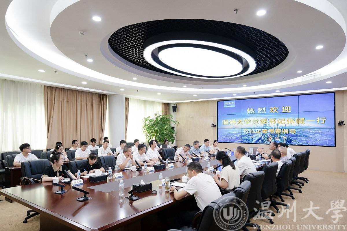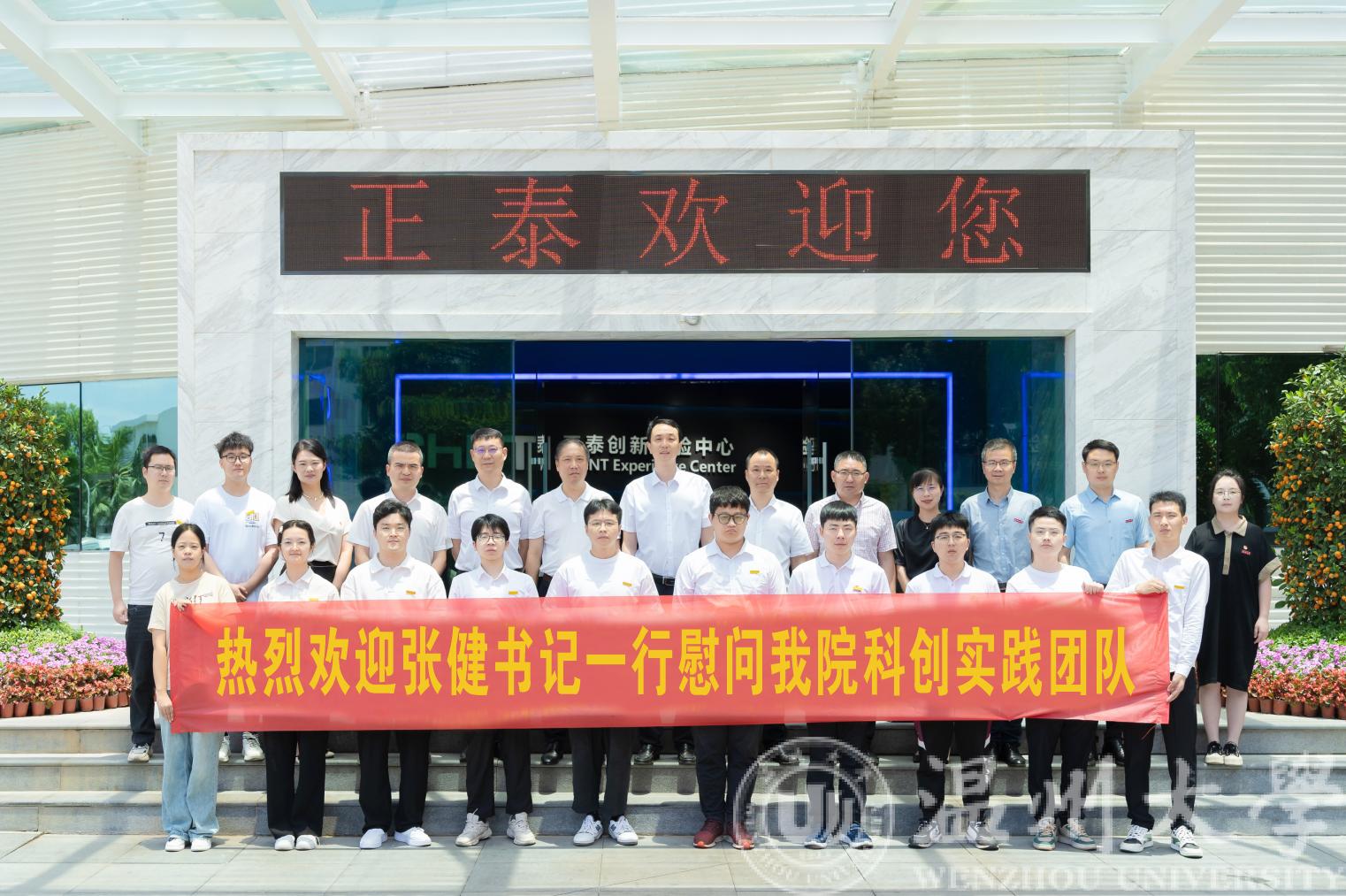 7月14日上午,beat365在线唯一官网党委书记张健来到正泰高科技工业园慰问beat365官网“数字孪生技术”科创实践团队,乐清市副市长叶序锋,正泰集团党委书记、监事会主席吴炳池热情接待了张健书记一行。