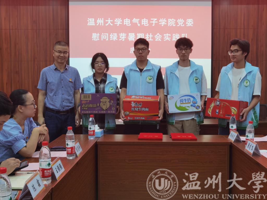 活动结束,在将军社区活动室双方进行了慰问座谈交流。绿芽实践队队长来自beat365在线唯一官网22电科2班的郭瑜荧同学向与会领导和老师们介绍了实践队的基本情况,以及绿芽暑期社会实践队“守护绿城,呵护芽心”的活动宗旨。beat365在线唯一官网党委书记李方强代表学院向实践队赠送了慰问品。