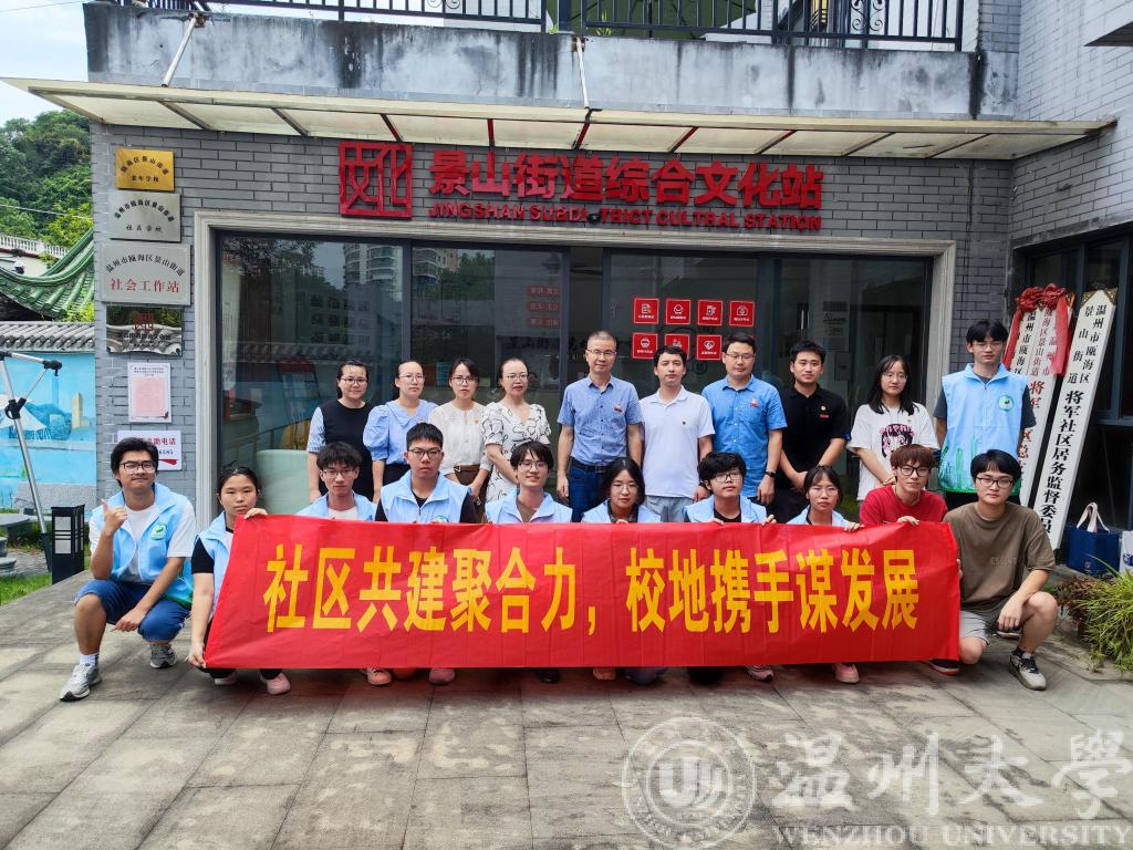 7月18日下午,beat365在线唯一官网党委书记李方强一行前往瓯海区景山街道将军社区慰问beat365官网正在进行暑期社会实践的同学们。beat365在线唯一官网组织员金海艳,学院绿芽实践队指导老师、本科生第二党支部书记潘龙飞,辅导员余明新等陪同慰问;瓯海区景山街道的党工委委员、组织委员王强强,瓯海区景山街道党建办陈霜,景山街道将军社区党总支书记陈慧玲,将军社区党总支委员、副主任徐范范等热情接待了李书记一行。