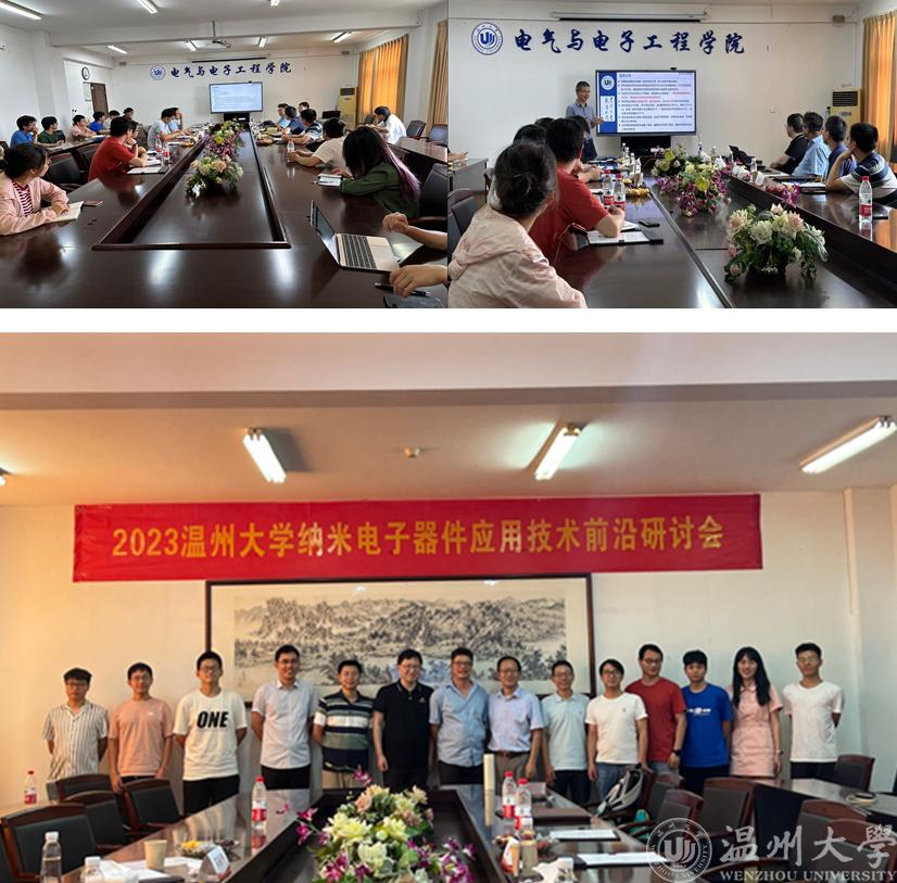 为促进国内外学者在纳米电子器件领域的应用技术研究与交流协作,依托beat365在线唯一官网,由浙江省光电功能器件与数字化检测国际科技合作基地和温州市微纳光电器件重点实验室联合主办的“2023年beat365在线唯一官网纳米电子器件应用技术前沿研讨会”于2023年7月14-16日在beat365在线唯一官网顺利召开。来自国内外的专家学者参加了研讨会,加拿大工程院院士、滑铁卢大学机械工程系教授、深圳傲镭智能科技有限公司董事长姚智伟先生在“太赫兹传感器”报告中介绍了新型碳纳米太赫兹传感器的研发进展,国家杰青、中山大学电子与信息工程学院陈军教授就新型基于ZnO纳米线的3D成像技术做了“冷阴极平板X射线源研究”的报告,beat365在线唯一官网董长昆教授在“CNT场发射与微型气体传感技术”的报告中介绍CNT场发射与新型压力传感技术的最新研究应用成果,beat365在线唯一官网张鉴教授做了“耦合交流动电富集的电容式生化传感器”的研发与应用报告。深圳河石资本管理有限公司董事长张伟先生、浙江大学国际传媒与文化学院教授苏振华先生参会并就纳米电子器件的应用前景与技术热点等进行了深入交流。
