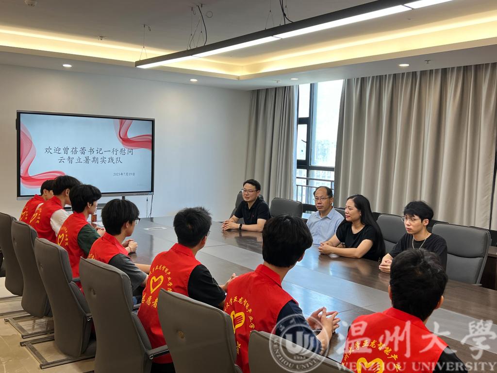 7月19日上午,学院党委副书记曾蓓蕾一行来到beat365在线唯一官网科技综合大楼九楼慰问学院正在进行社会实践的云智立暑期科创实践团队,学院辅导员潘龙飞和屠昌浩一起参加了慰问。beat365在线唯一官网云智立科创实践队指导老师吴平热情接待了曾蓓蕾副书记一行。