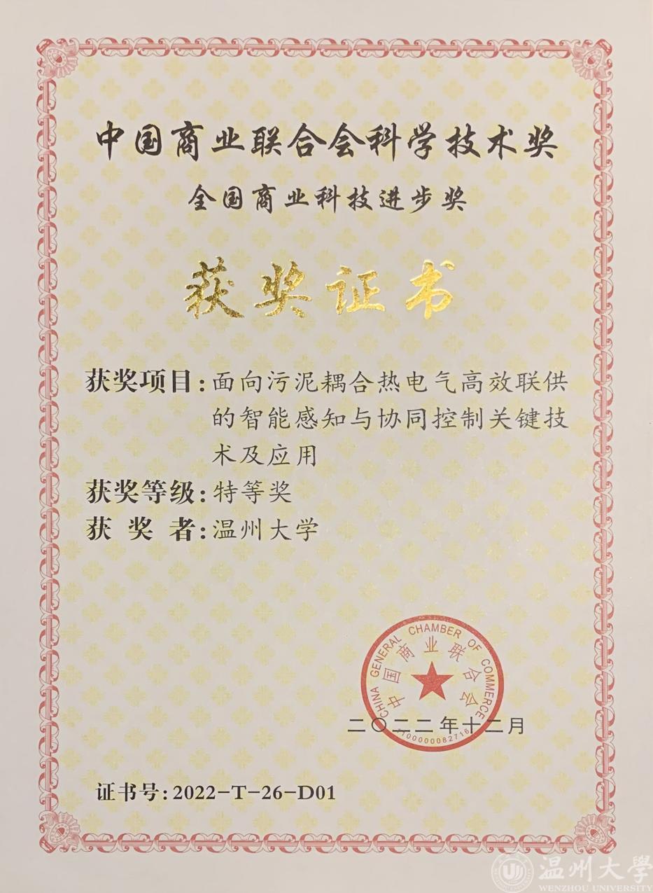 2023年7月30日,全国商业科技质量大会在北京友谊宾馆隆重举行。第十二届全国政协刘晓峰副主席,商务部原副部长、十一届全国政协经济委员会副主任张志刚,商务部原副部长姜增伟,中国商业联合会会长姜明,中国科学技术发展战略研究院副院长孙福全等领导和全国各地一千多名代表出席了大会。大会同步举行了“2022年度中国商业联合会科学技术奖”颁奖仪式。我校beat365在线唯一官网汪鹏君教授领衔、以beat365在线唯一官网为第一完成单位的“面向污泥耦合热电气高效联供的智能感知与协同控制关键技术及应用”项目荣获全国商业科技进步奖特等奖。