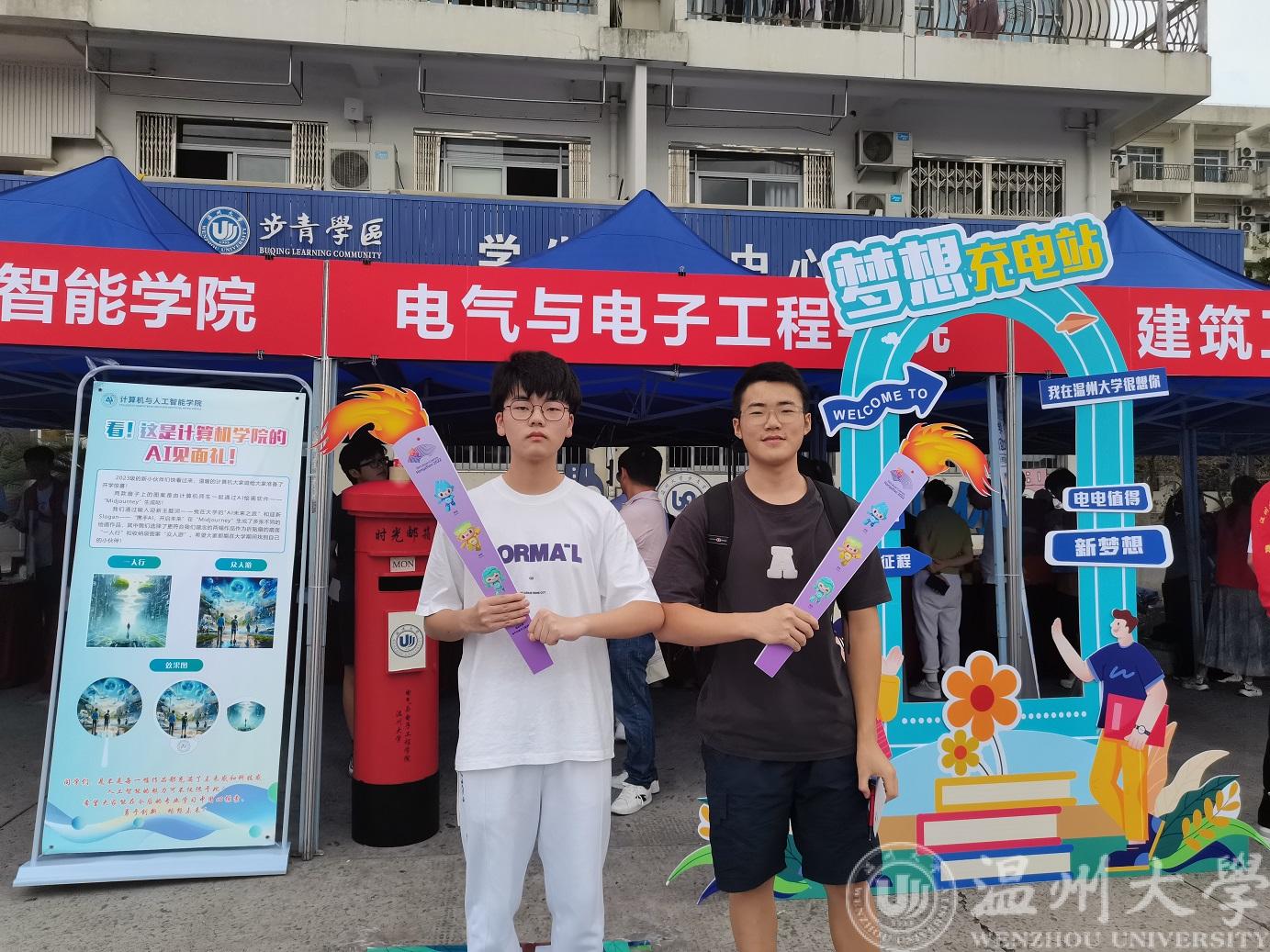 除了融合第19届杭州亚运会的多项元素外,学院还将火炬传递搬进迎新现场。新生迈上“充电赛道”,新老生传递“火炬”,寓意着温大学子“求学问是,敢为人先”校训精神和投身科研、矢志报国精神的传递。