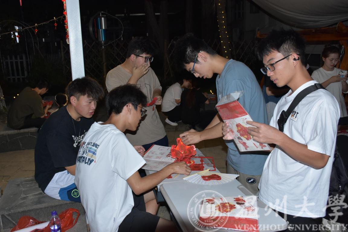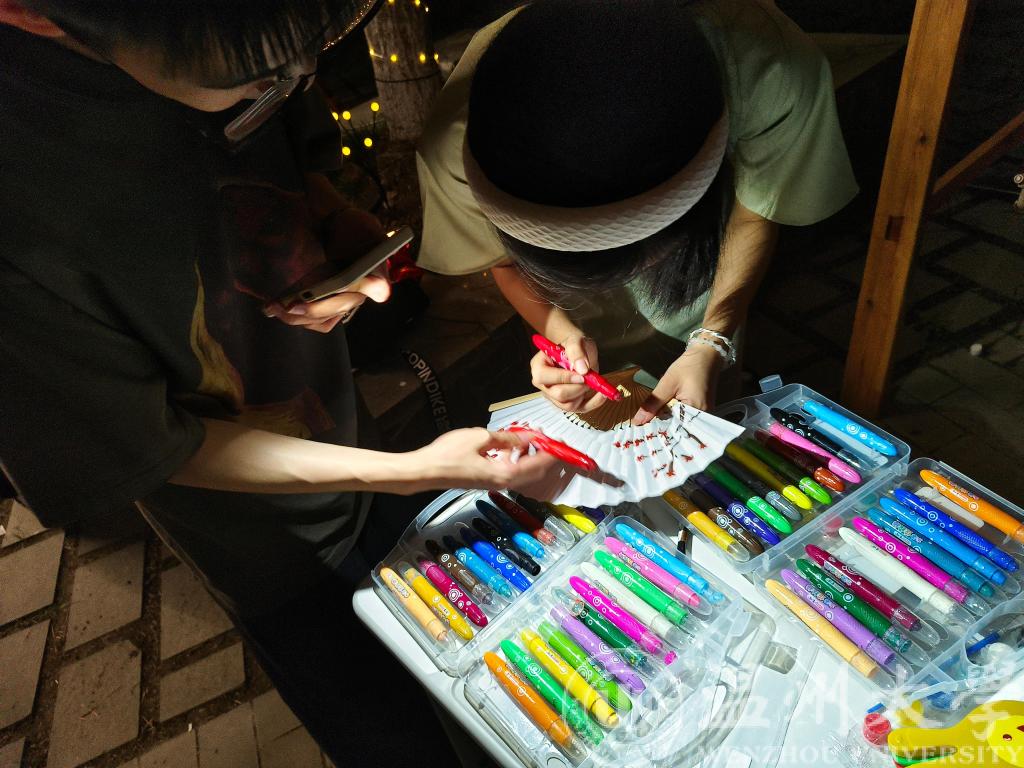 团圆扇上绘彩像,清辉月下共婵娟。团扇代表着团圆、友善、吉祥如意,同学们聚集在通红的笼火下,认真DIY一把属于自己的团圆扇,寄托着每个人对于中秋佳节的祝福与对未来理想的憧憬与向往。正所谓“叠扇放床上,企想远风来;轻袖佛华妆,窈窕登高台。”由大家手绘中秋和国庆,留下最美的祝福。