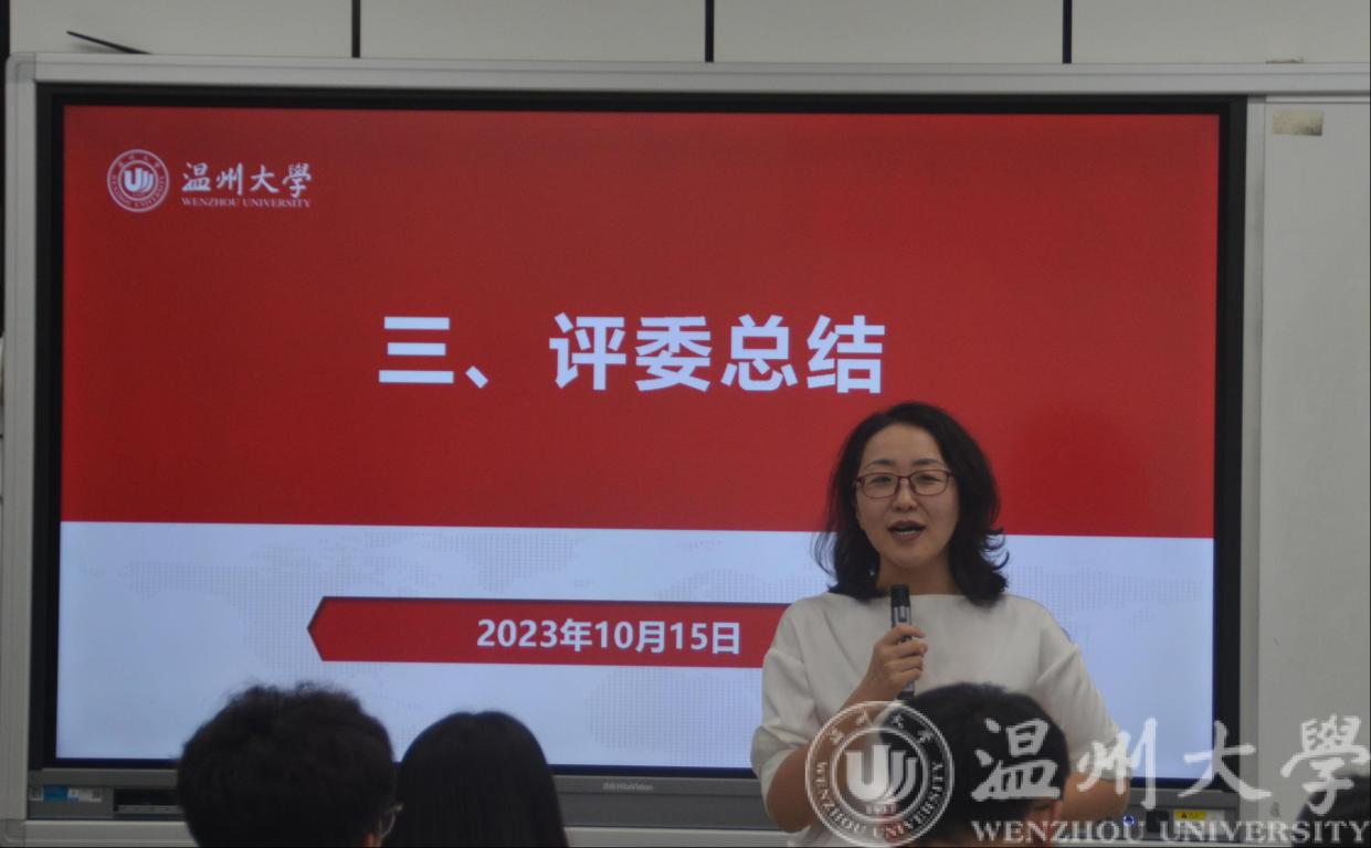 所有选手展示完毕后,朱丽莉老师作为评委代表总结发言。她赞扬了beat365官网大一新生踊跃参赛的热情,并建议同学们不要拘泥于模板,既要仰望星空,又要脚踏实地:首先,同学们的职业规划要能结合经济社会发展的需要,要有情怀;其次,同学们对目标职业要有充分的了解;最后,职业规划大赛作为一项比赛,同学们要注重一些外在的要素,例如着装、PPT等。