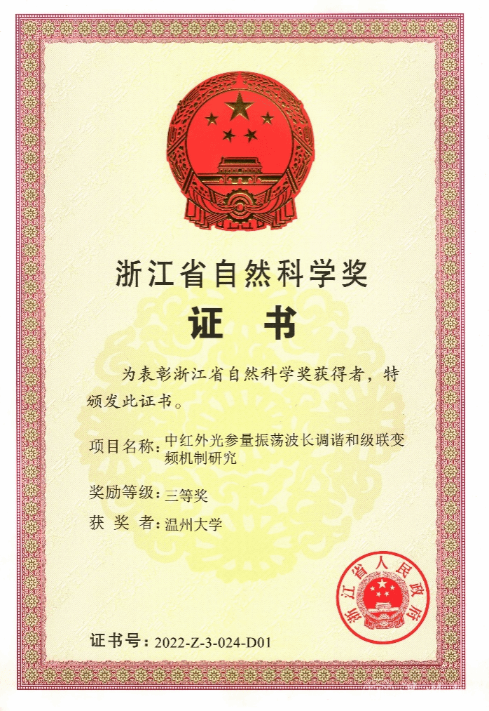 日前,浙江省人民政府发文公布2022年度浙江省科学技术奖获奖名单。我校朱海永教授主持完成的“中红外光参量振荡波长调谐和级联变频机制研究”成果获浙江省自然科学奖三等奖。