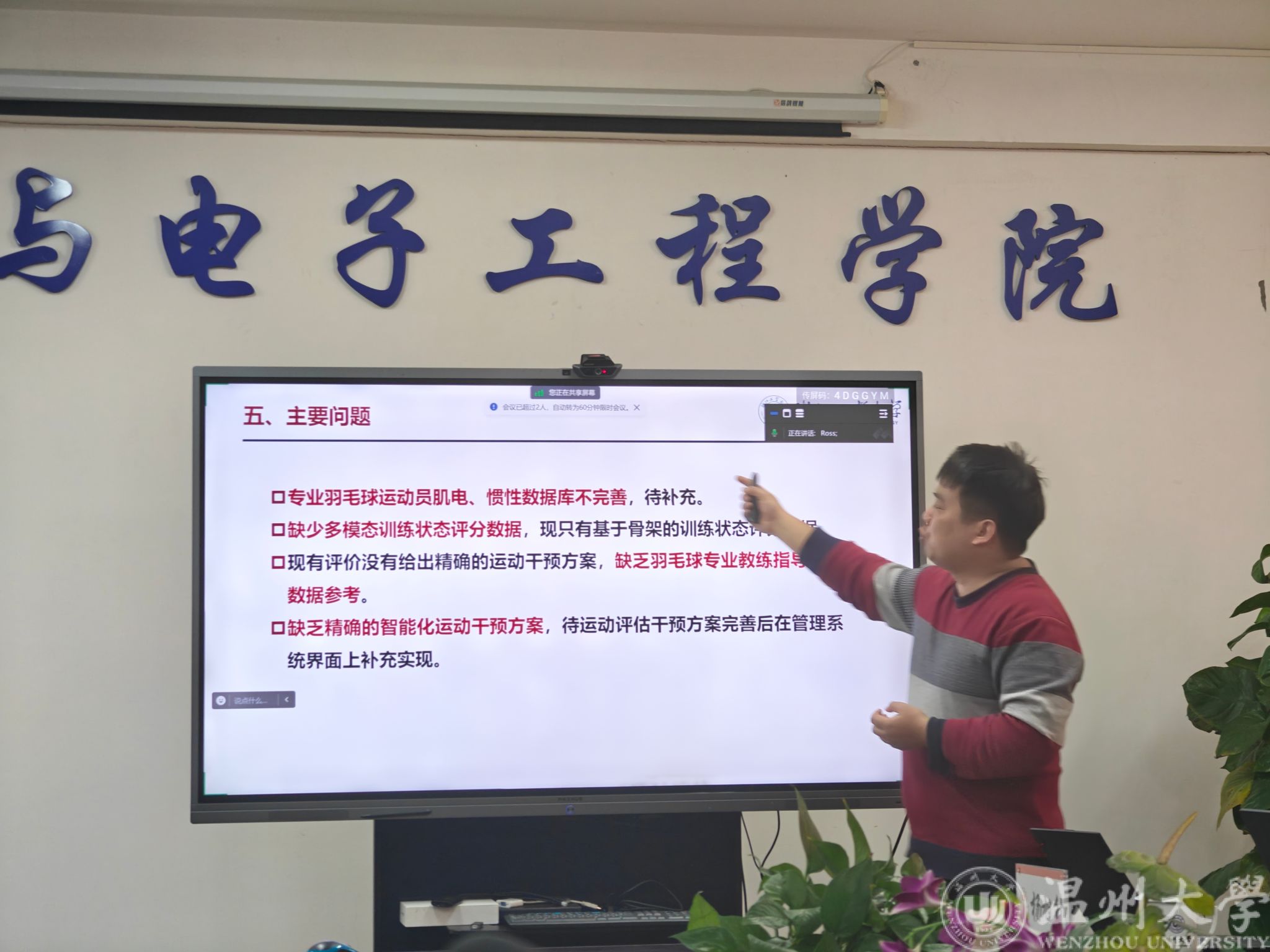 随后,王小航教授分享了在人工智能应用方面的最新研究成果和未来发展方向。杨旭升副教授作了关于浙江省“领雁”研发攻关计划项目“智能化精准运动能力检测与评估系统研制—竞技运动的智能融合检测和评估系统”的阶段性研究成果的报告。与会科研骨干和专家对羽毛球数据集采集、运动相关的预测算法的实施路径等相关议题进行了热烈的交流,也为beat365官网人工智能应用领域科研发展带来了更多珍贵的启发。