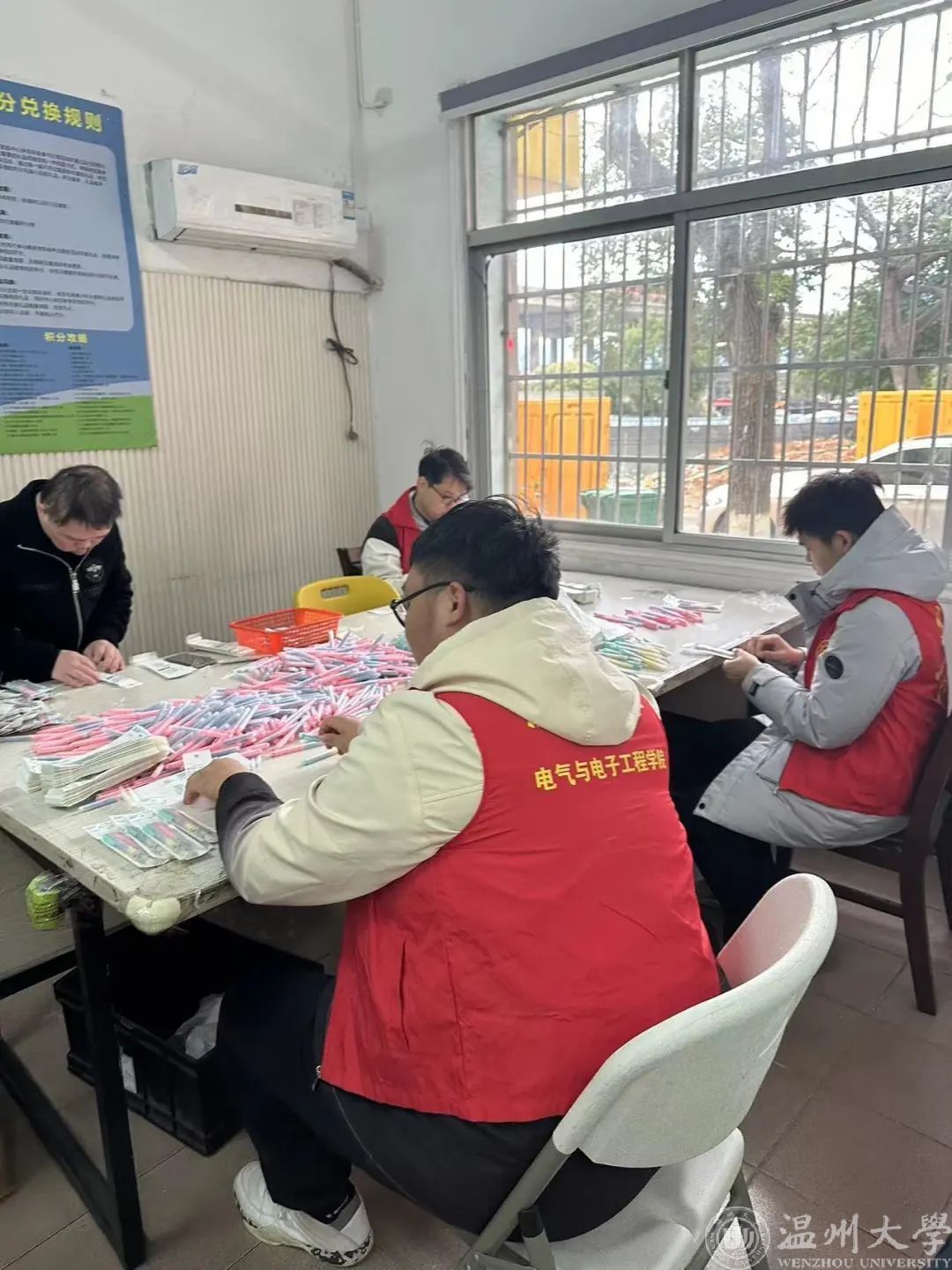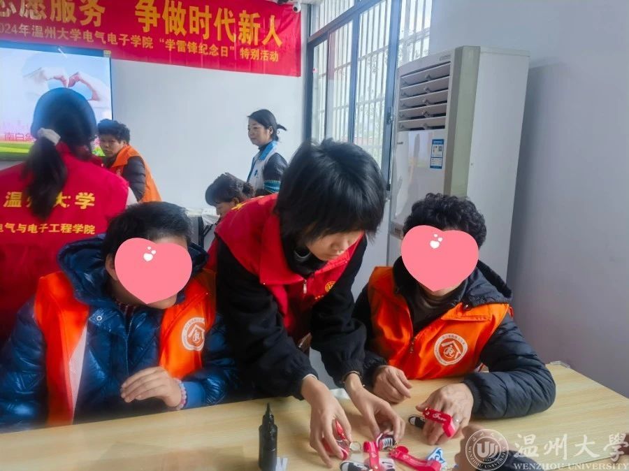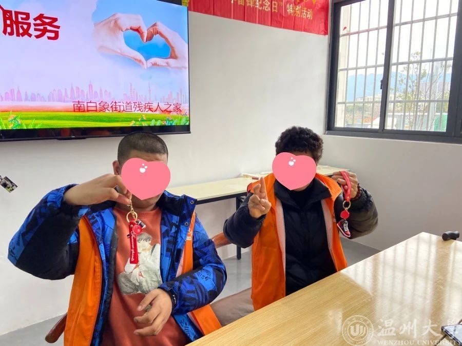 在龙湾区青苗残疾人之家,志愿者们还参与了残疾人的日常生活,和他们一同装笔、封盒、布置房间。在与残疾人亲切交流的过程中,志愿者们切实地了解他们的需求和困难,不断改进帮助方式,让残疾人感受到社会的温暖与关爱。志愿者们还分发了,beat365在线唯一官网单脚鞋银行的文创产品,看到他们脸上的笑容,同学们们感到温暖幸福。