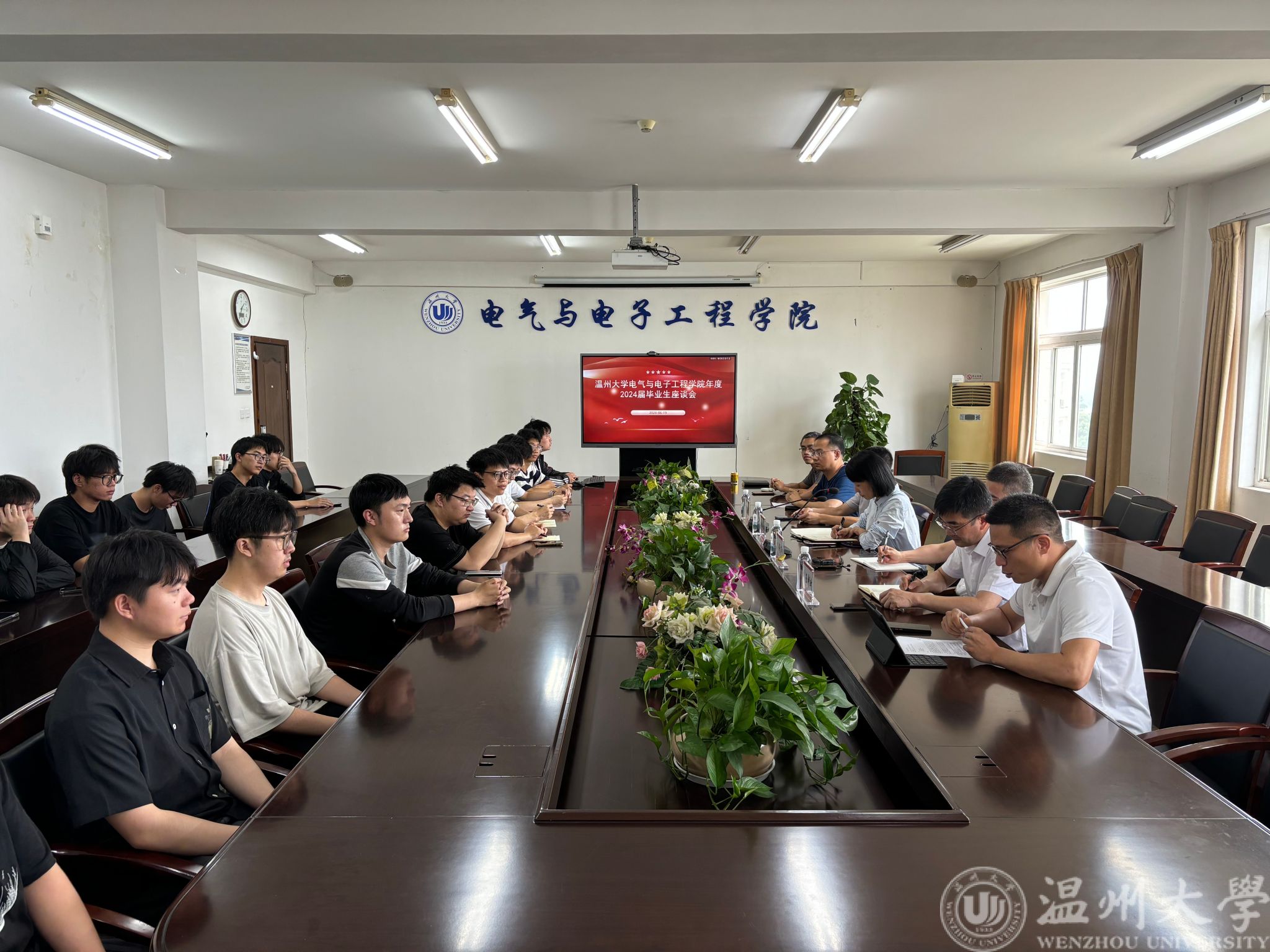 为了更好地了解同学们在校期间的真实感受,助力学院和学校的发展,2024年6月19日下午,beat365官网于1A502会议室召开了2024届毕业生座谈会。学院党委书记陈文远、副院长舒亮、副院长陈孝敬、党委副书记王中对、电子系主任李理敏、班主任代表蒋成玺、教学科科长孙双、学工办主任廖晓安、毕业班辅导员屠昌浩以及二十余名本硕毕业生代表参加了本次座谈会。