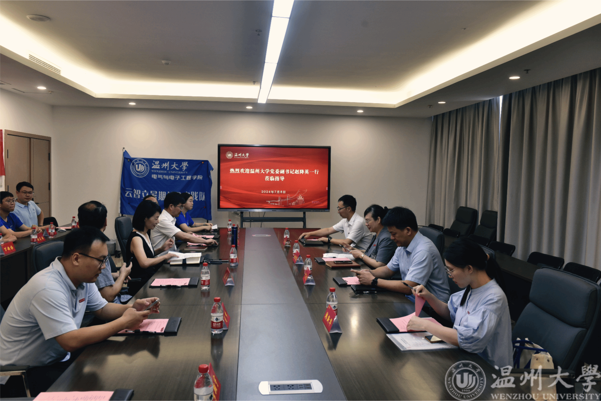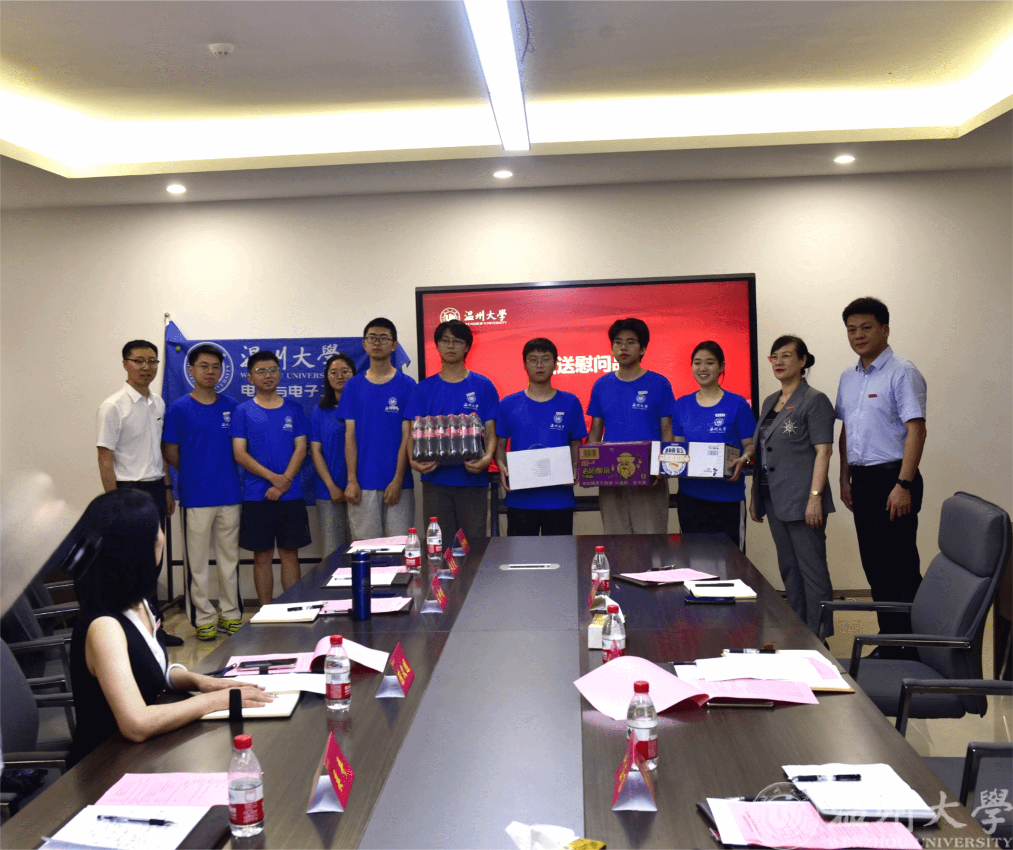7月8日上午,beat365在线唯一官网党委副书记赵降英、校党委组织部副部长叶正飞、校团委书记杨鹏以及校团委办公室相关人员一行看望慰问了beat365官网云智立暑期社会实践队。beat365官网党委副书记王中对、beat365在线唯一官网亚龙智能产业学院执行院长朱志亮、实践队指导老师吴平教授以及相关辅导员参加慰问座谈会。座谈会由学院党委书记陈文远主持。