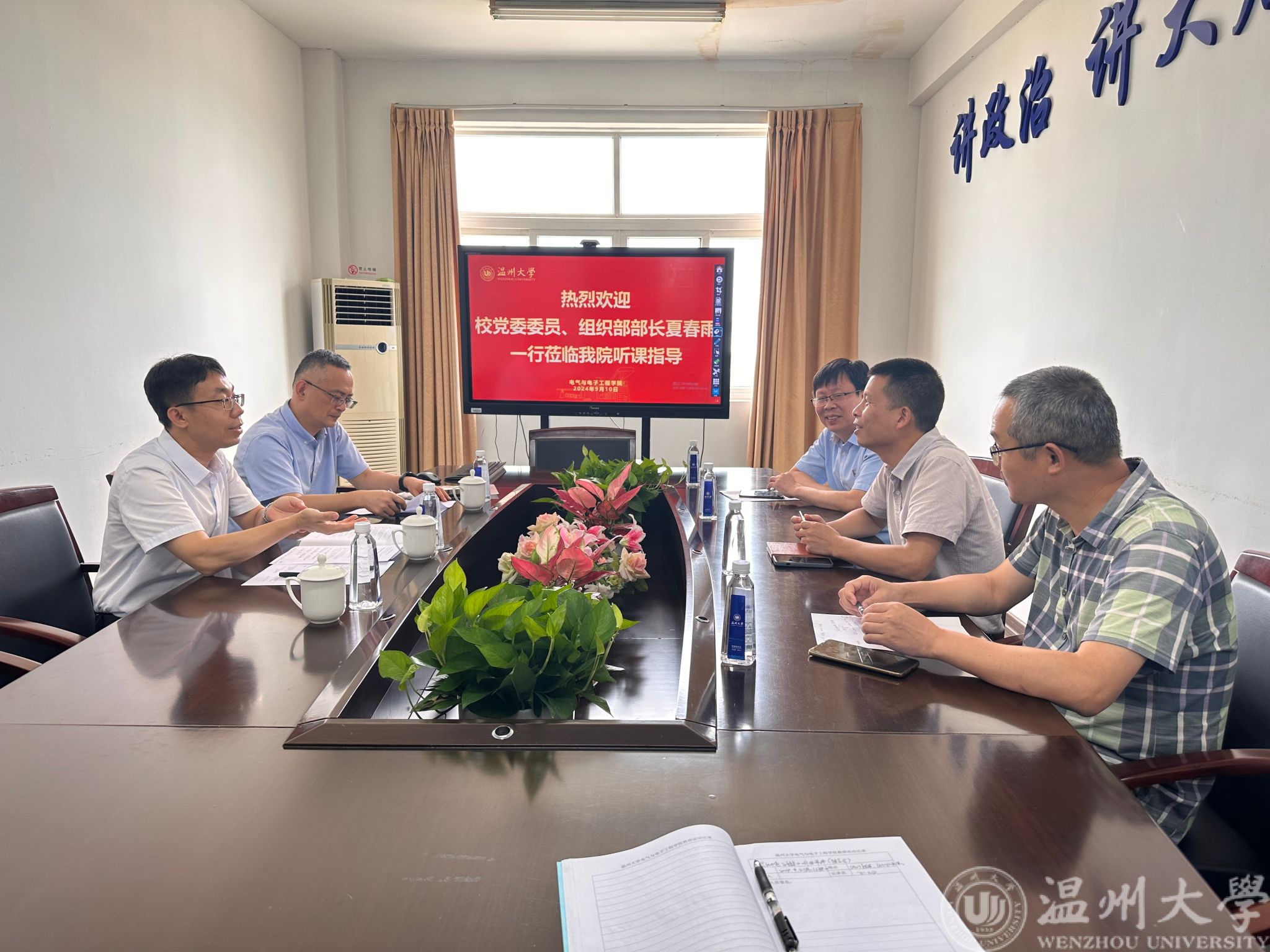 课堂上,领导们认真听课,详细记录课堂教学情况。课程结束后,听课人员在504会议室进行了课程反馈和教学交流。夏部长一行认为陈崇巨老师的课程非常具有示范效果,备课充分、授课投入、语言表达清晰准确、教态教风亲切自然,师生关系处理恰当,课堂把控到位,学生专注度高,很好的把握了教学“五个维度”。同时,也对beat365官网的教师队伍建设、青年教师培养等方面提出了希望和建议,并表达了对beat365官网教师的教师节祝福。