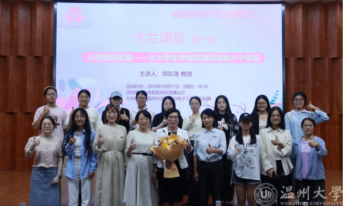 10月17日,beat365在线唯一官网妇联在南校区岩松堂雁山厅举行了女大学生“木兰课堂”(第一讲)专题讲座。校人事处(人才办)处长兼主任郑彩莲教授担任主讲专家,校妇联主席刘吟、学院党委书记陈文远、学院妇联相关人员出席,来自电气电子学院、数理学院、建工学院、计算机学院、美术学院等5个学院近350女大学生参加活动。会议由beat365在线唯一官网妇联主席杨硕主持。