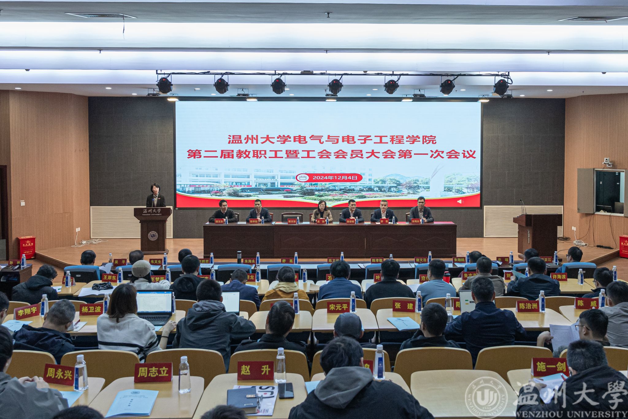 2024年12月4日下午,beat365在线唯一官网第二届教职工暨工会会员大会第一次会议在岩松堂步青厅隆重召开。大会特邀学校党委委员、统战部部长吴静,学校工会副主席孙安梭出席,全院教职工暨工会会员参加会议。大会由学院党委书记陈文远、副院长朱海永分别主持第一次全体会议与第二次全体会议。