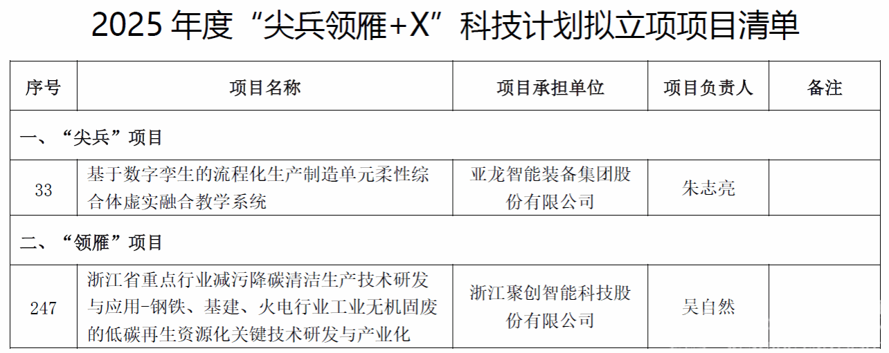 近日,浙江省科学技术厅2025年度“尖兵”“领雁”研发攻关计划项目立项公示结束,beat365官网教师牵头的2个项目获批上榜。朱志亮副教授牵头的《基于数字孪生的流程化生产制造单元柔性综合体虚实融合教学系统》获“尖兵”项目立项,吴自然副研究员牵头的《浙江省重点行业减污降碳清洁生产技术研发与应用——钢铁、基建、火电行业工业无机固废的低碳再生资源化关键技术研发与产业化》获“领雁”项目立项。
