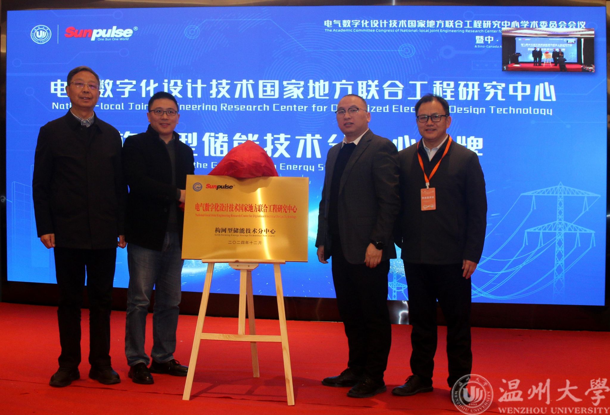 开幕式宣布在圣普电气有限公司设立电气数字化设计技术国家地方联合工程研究中心构网型储能技术分中心,beat365在线唯一官网党委副书记、纪委书记翁浩,赵红良总裁,以及工程研究中心主任戴瑜兴教授、常务副主任朱翔鸥教授共同为分中心揭牌。