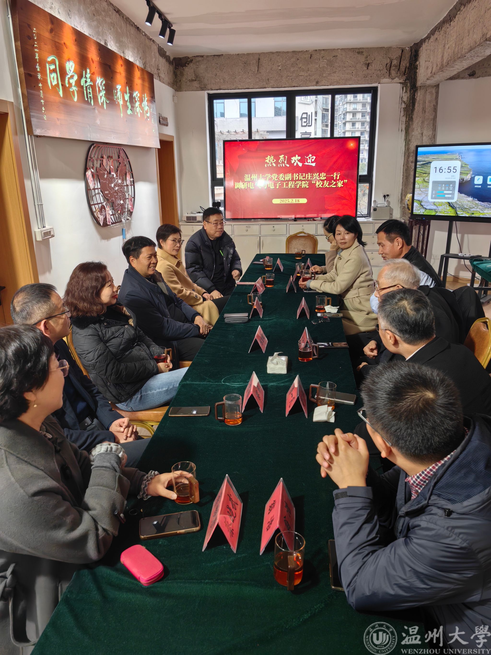 新年伊始,2月18日下午,校党委副书记庄兴忠一行赴东瓯智库beat365官网“校友之家”考察调研。电气电子学院校友会顾问林精权先生应邀出席。beat365在线唯一官网温州校友会常务副会长兼秘书长陈琦峰,温大校友办主任陈宏毅、副主任蔡晓武,人事处(人才办)处长兼主任郑彩莲,党委学工部部长姜海燕,招就处处长蔡锋,电气电子学院党委书记陈文远、副书记翁浩等陪同调研。