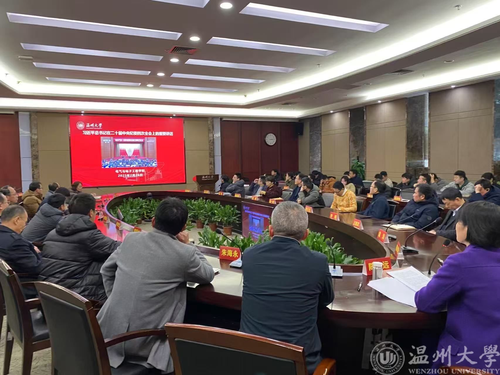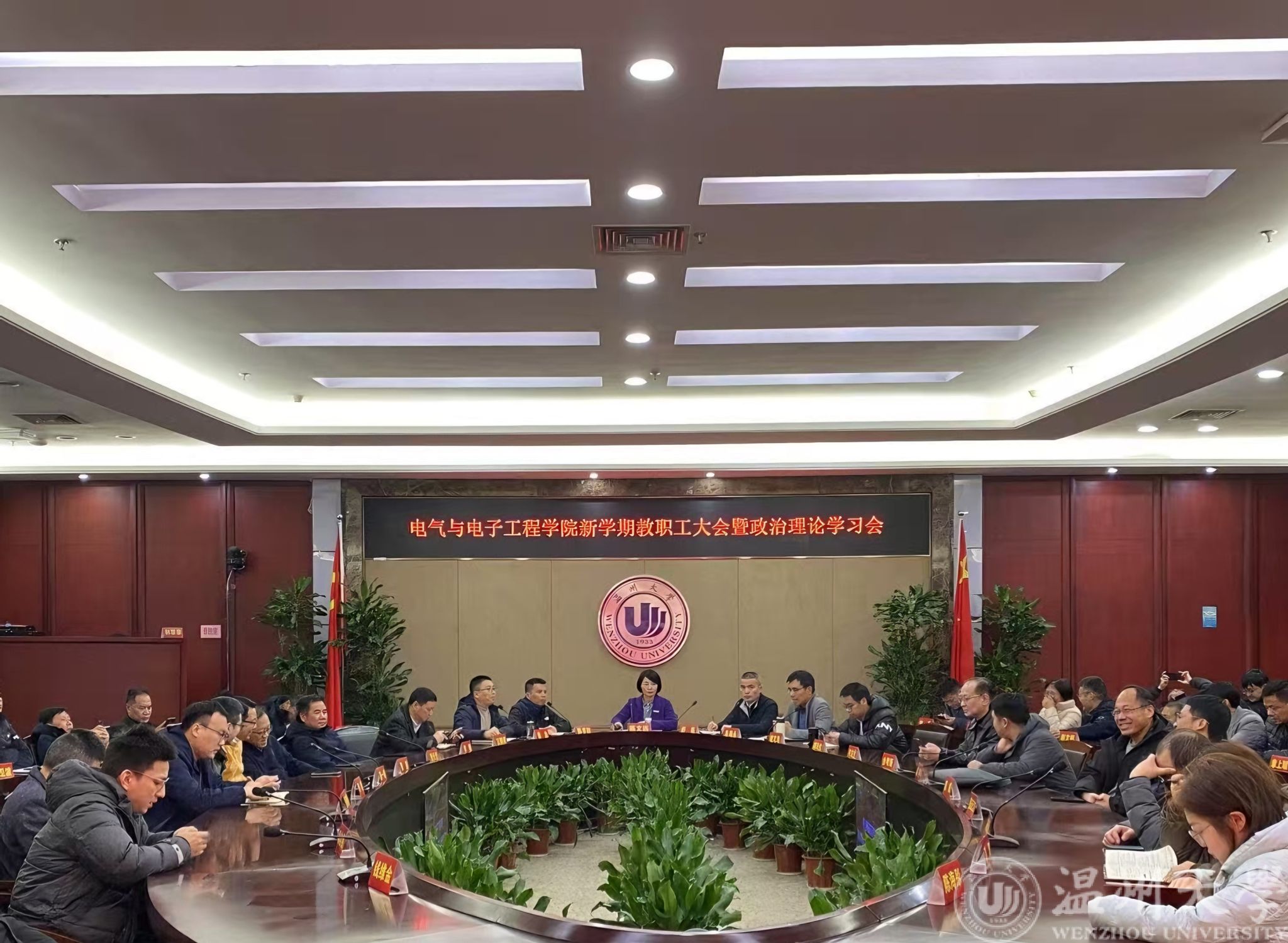 2月26日下午,电气电子学院在岩松堂白鹿厅召开新学期教职工大会暨政治理论学习会。会议由学院党委书记陈文远主持。