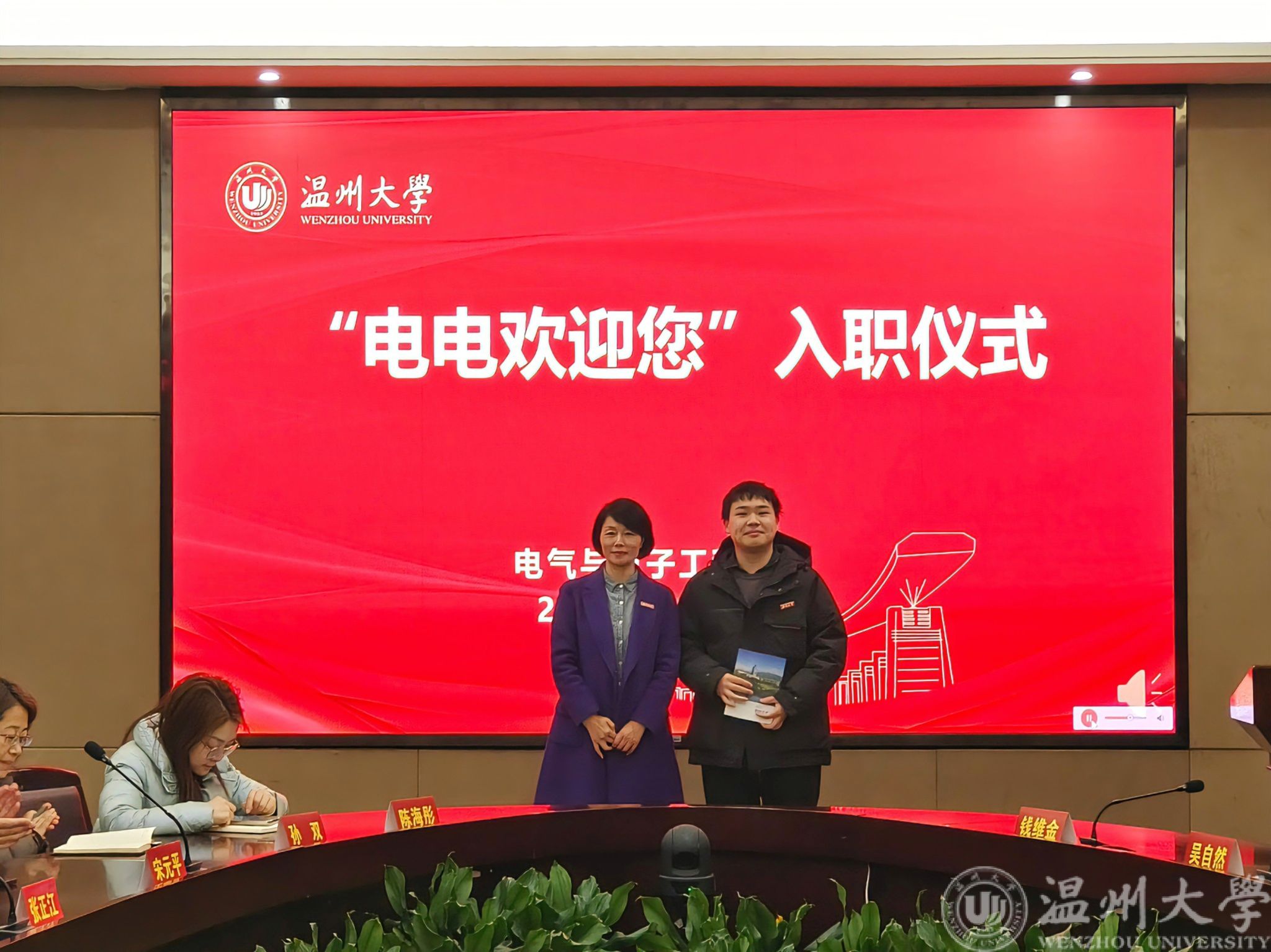 会上,一场温馨的“电电欢迎您”入职仪式为新学期注入了新的活力。陈文远书记为新入职的胡健雄博士赠送了校徽和《beat365在线唯一官网教师手册》,并代表学院向新教师表达了热烈的欢迎和殷切的期望。