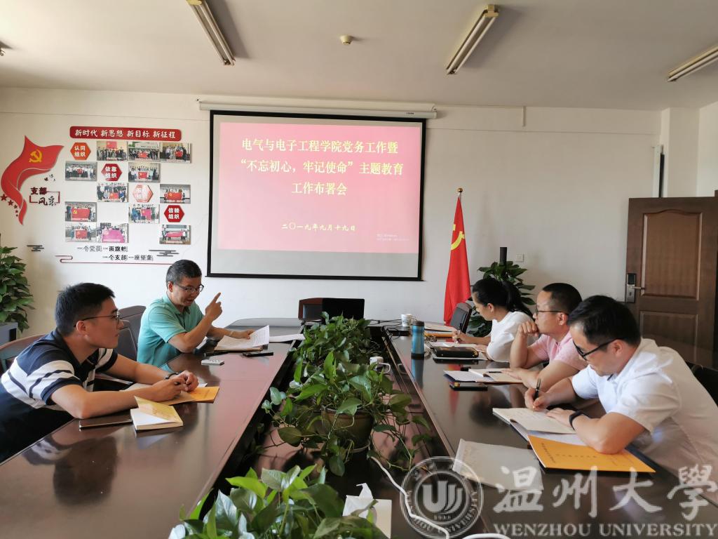 会议重点布置了“不忘初心、牢记使命”主题教育工作。李书记说,开展主题教育,是深入学习贯彻落实习近平新时代中国特色社会主义思想、加强理论武装的迫切需要,是推进党的建设的迫切需要,大家要充分认识到开展主题教育的重要意义,切实增强开展好主题教育的思想自觉、政治自觉、行动自觉。会上,李书记带领支部书记仔细研读了学校组织部印发的《中共beat365在线唯一官网委员会“不忘初心、牢记使命”主题教育工作计划表》,并充分讨论,形成了“每天多学半小时”、“学习强国勤打卡”、“会址研学”、“集体答题会”等主题教育学习形式,李书记强调,要结合建国七十周年,把主题教育开展得有深度、更入心。