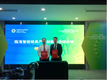beat365在线唯一官网党委副书记吴金法与瓯海区副区长林照光举行智能锁具综合体签约仪式