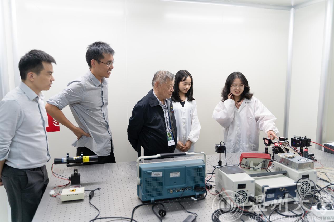 10月25日,应我校团委和激光与光电子技术研究所朱海永团队邀请,深圳大学范滇元院士和许长文博士莅临我校指导。范院士一行来学校后,在朱海永和段延敏老师的陪同下来到激光超净实验室参观。在听了朱老师对实验室的介绍后,范院士对课题组同学的实验进行了现场指导并提出了宝贵意见。随后在南校区1号楼A502会议室进行了座谈交流。校党委庄兴忠副书记,beat365官网李方强书记、曾蓓蕾副书记,数理学院高利新院长、何林李副院长,校团委丁强副书记,激光与光电子技术研究所的所有师生参与了座谈。范院士对激光发展现状和展望做了高瞻远瞩的介绍,并在听取同学们对挑战杯作品的汇报后给予指导和鼓励,现场的老师和同学们都表示受益匪浅。