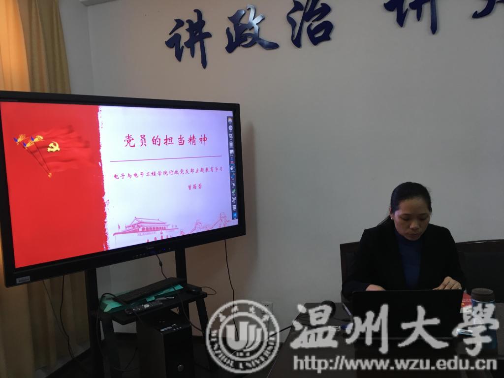 为进一步推进落实“不忘初心、牢记使命”主题教育,增强主题教育实效,电气学院教工行政党支部在1A504会议室举行书记讲党课活动。学院党总支副书记曾蓓蕾为全体支部成员开展题为《党员的担当精神》主题学习。