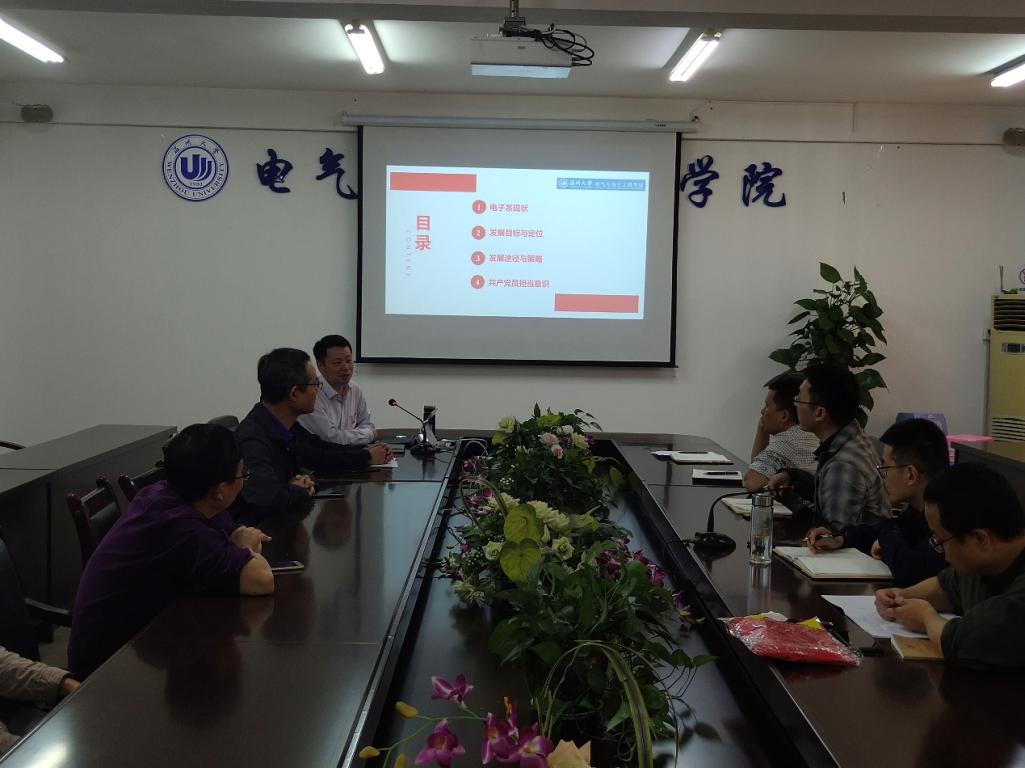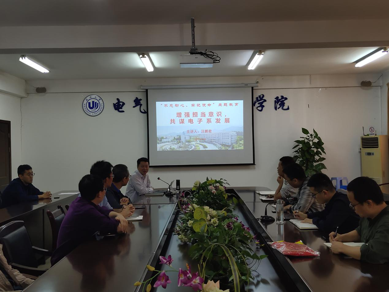 10月30日下午,beat365官网电子系在1A502召开“不忘初心、牢记使命”主题教育学习会,系部全体教师参加了本次学习会。在本次学习会上,汪鹏君院长作了题为“增强担当意识,共谋电子系发展”的主题党课。汪院长围绕电子系现状、发展目标与定位、发展途径与策略、共产党员担当意识四个方面,深入阐述了电子系现阶段“发展如何”以及“如何发展”的问题,提出了一系列富有建设性的意见,为专业和学科的下一步发展指明了方向。随后,与会教师逐一发表了自己的观点,并就一些具体问题展开了热烈的讨论。