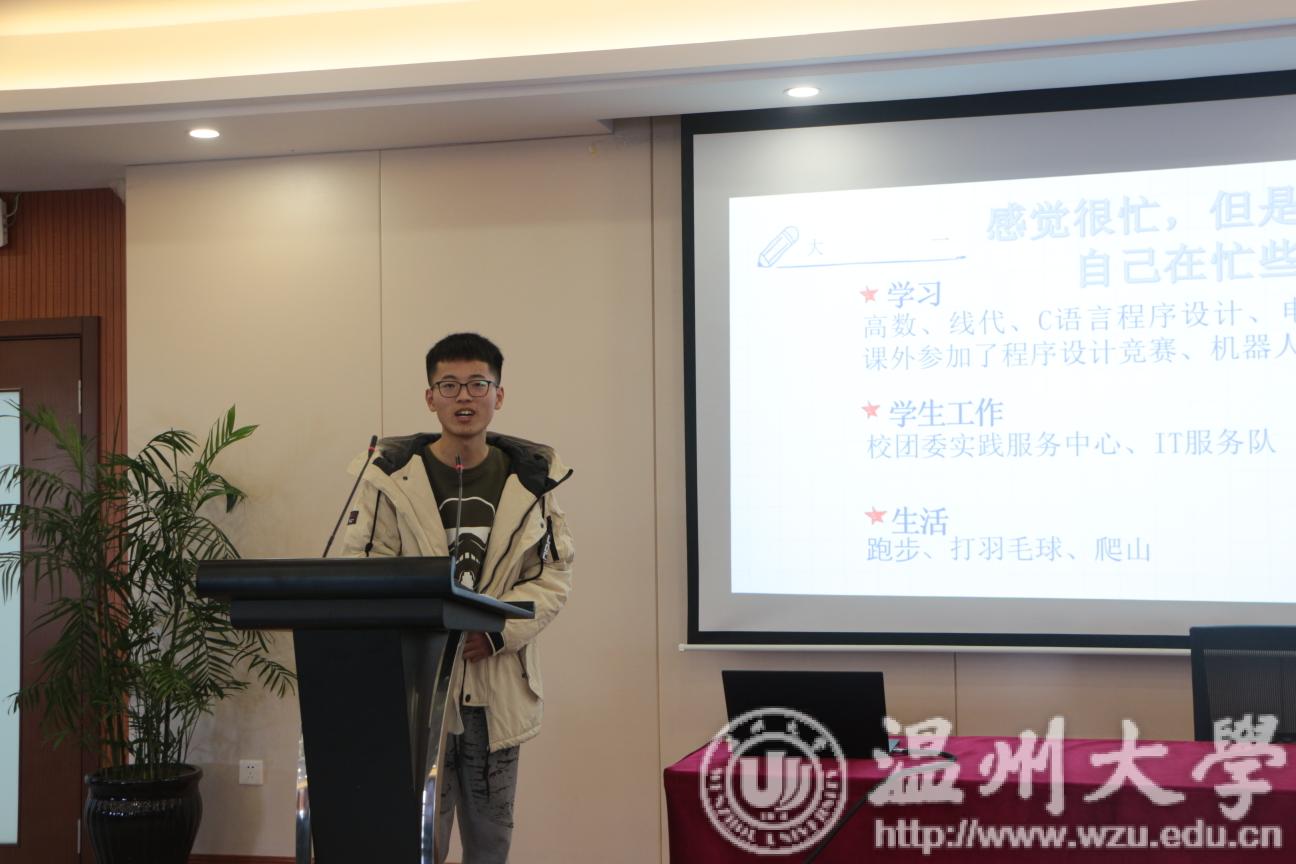 其次,陈鸿楠校友分享了他被竞赛和科研充斥着的大学生活和意义非凡三点一式的考研经历。他用自身经历为大一新生们强调了大学期间积极参加科研及竞赛的重要性。
