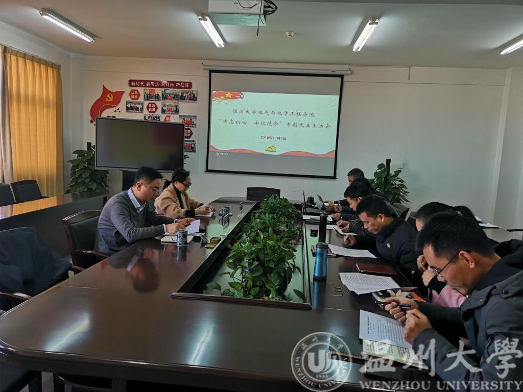 2019年12月9日上午,beat365在线唯一官网领导班子在南校区1A512会议室召开“不忘初心、牢记使命”领导班子专题民主生活会。学院领导班子成员参加会议,会议由党委书记李方强主持。副校长、党委委员钱强莅会指导。