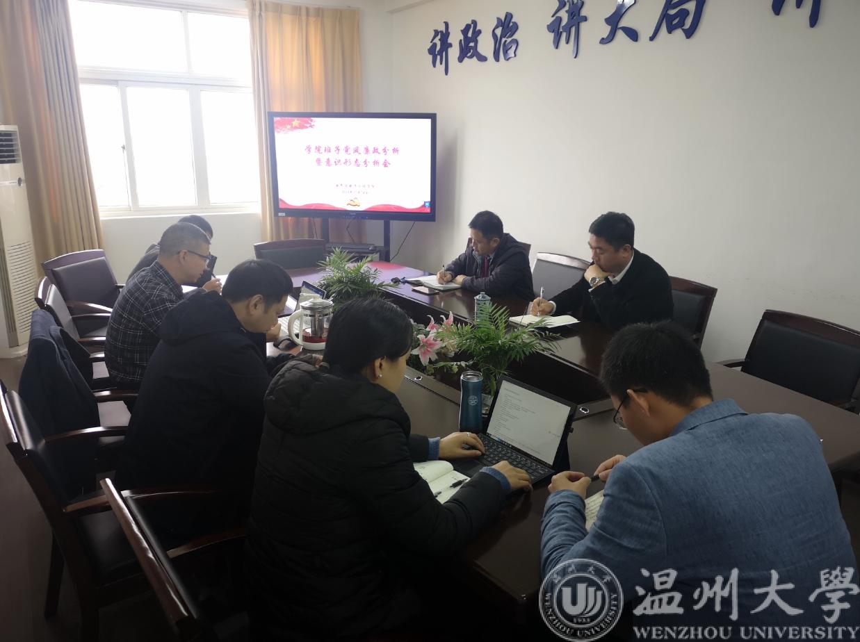 12月24日上午,beat365在线唯一官网2019年党风廉政建设及意识形态工作情况分析会在南校区1A504会议室召开。学院全体班子成员参加会议,会议由学院党委书记李方强主持。副校长、党委委员钱强莅会指导。