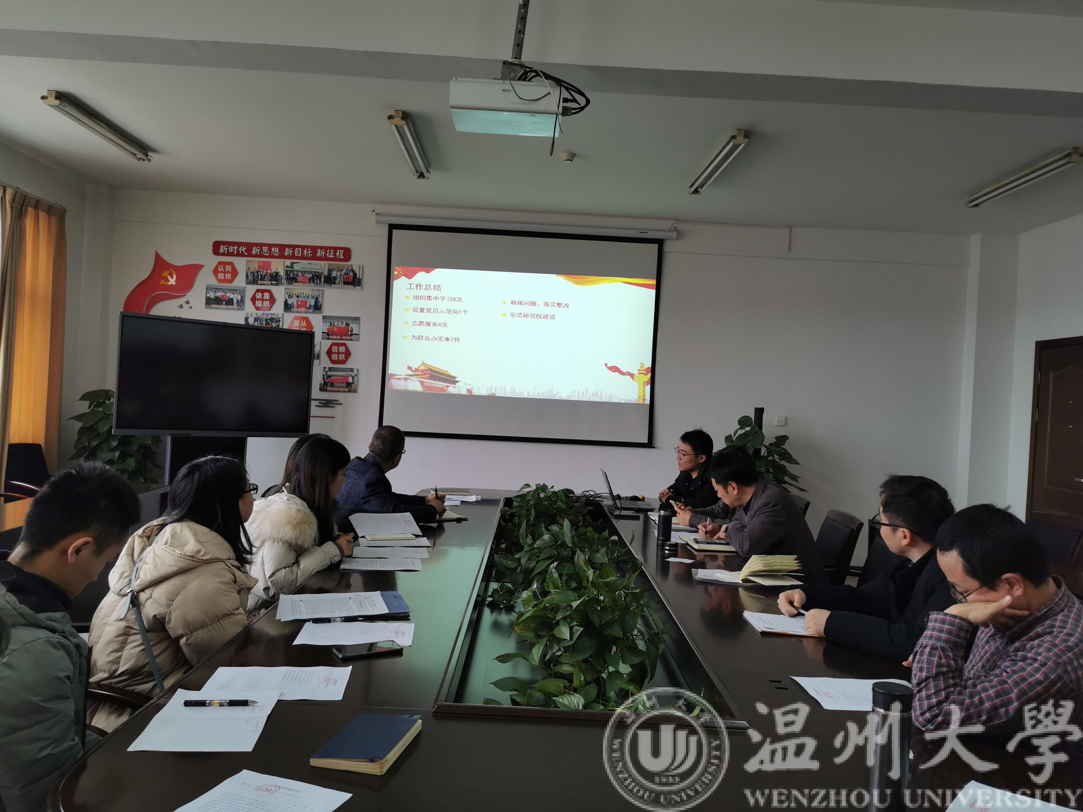 李方强书记首先介绍了本次评议会议的流程和要求,随后8个师生党支部依次进行述职。电子系教工党支部展示了支部去乐清白象企业调研的特色活动,电气系支部汇报了支部党员在专业认证中发挥的堡垒作用,低压电器平台支部汇报了支部在平台搬迁、研究院建立中的积极作用和为企业所开展的志愿服务,行政支部介绍了对接学业预警学生的做法,本科生第一支部汇报了党员联系、谈话制度,本科生第二支部和研究生第一支部着重汇报了在主题教育中党员示范岗的设立情况,研究生第二党支部着重剖析了支部检视结果......各支部的经验做法促进了相互学习。
