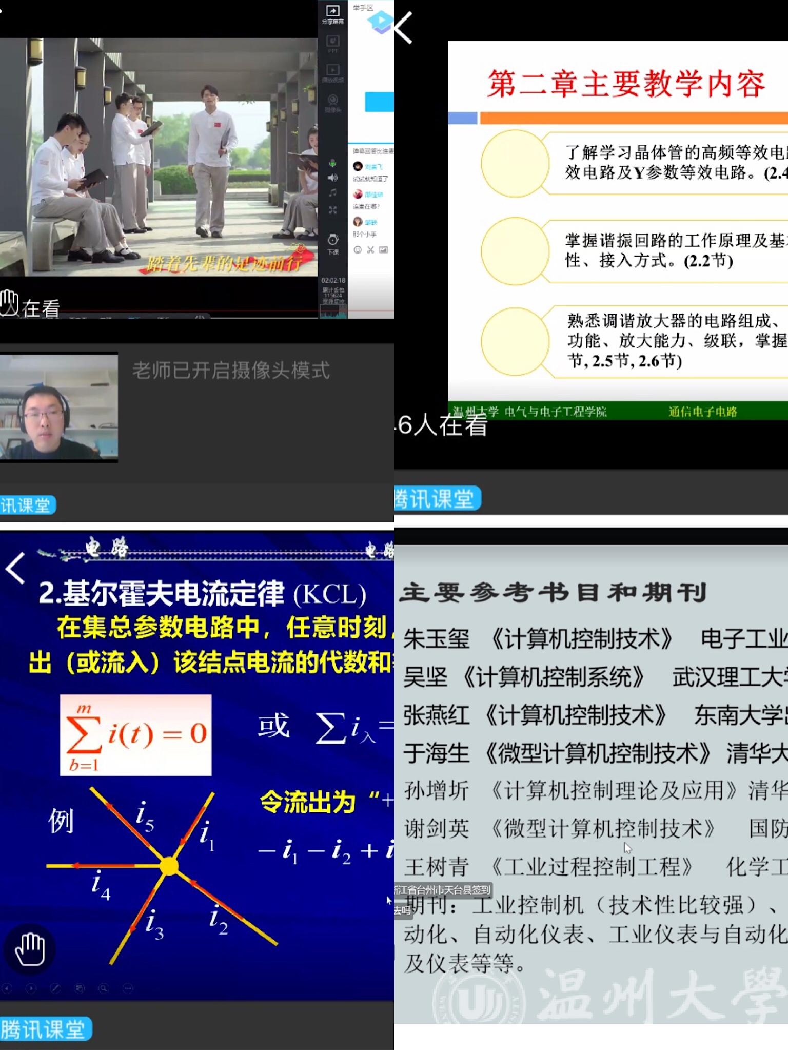 2月17日,原本是学校正式开学的日子,但疫情当前,师生无法返校给本学期的教学工作提出了最大的挑战。电气电子学院按照学校“停课不停教,停课不停学”统一部署与要求进行线上教学安排。2月24日,迎来线上开课的第一天,学院11门课程顺利开展线上教学。校领导钱强带队参加了beat365官网施肖菁老师的《电子电路分析》课程的网上直播教学,同时,学院领导、各系主任、专业负责人、学院教学督导、学院线上教学督导、教务科、学生科也积极参与上网跟踪课堂效果和质量,随时做好反馈工作;老师们准备充分,应急方案有效;同学参与积极性高,学院线上教学工作开展顺利。