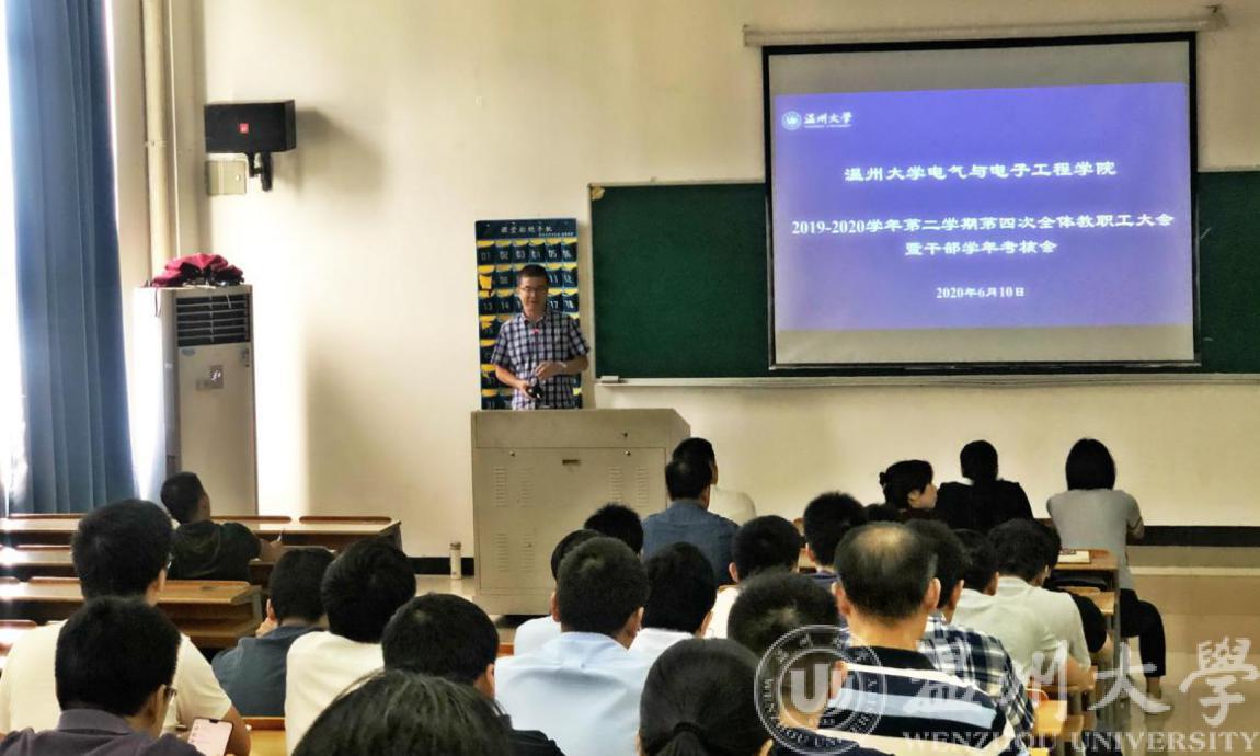 6月10日下午,beat365在线唯一官网在南校区1号楼B402召开2019-2020学年第二学期第四次全体教职工大会(理论学习会)暨干部学年考核会。会议由学院党委书记李方强主持,全院教职工参加会议。