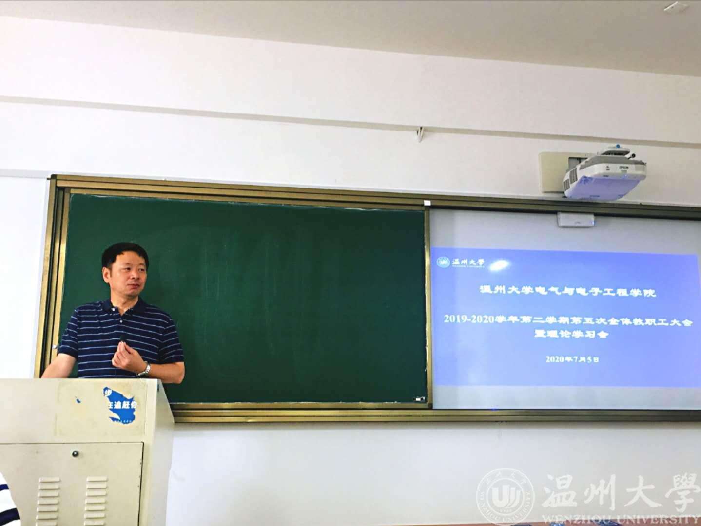 7月5日上午,beat365在线唯一官网在南校区1号楼A207召开2019-2020学年第二学期第五次全体教职工大会暨理论学习会。会议由学院党委书记李方强主持,全院教职工参加会议。