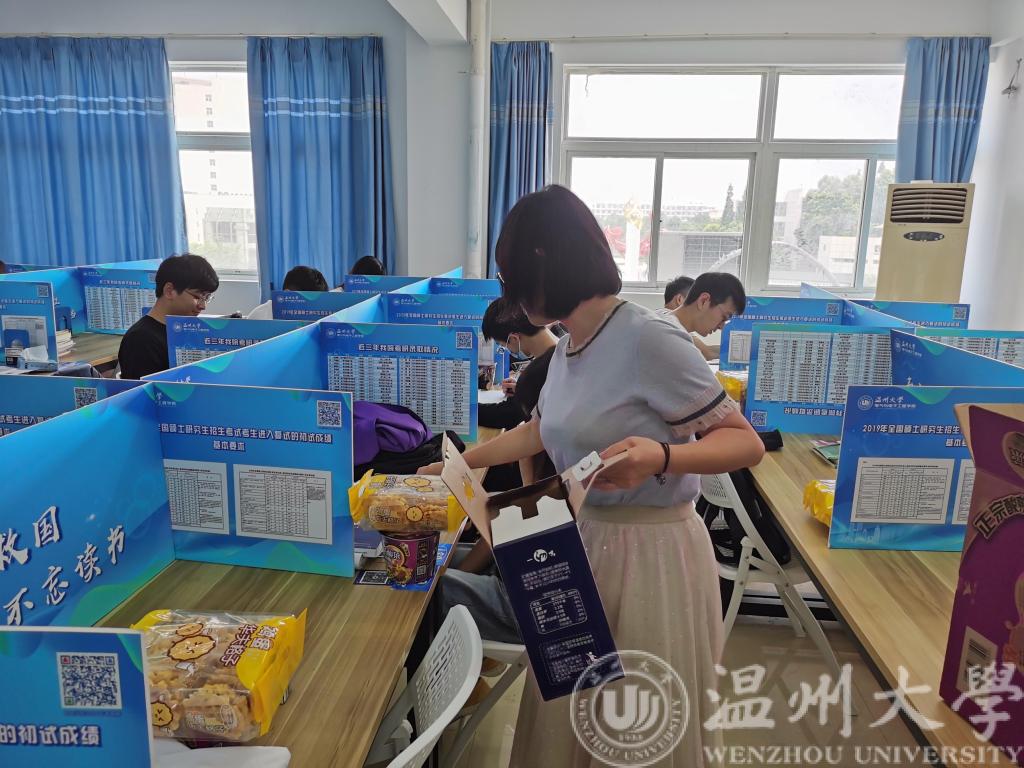 近期,温州最高气温高达35℃,学院领导老师心系留校考研复习的学生,7月14日上午10:00,院党委副书记曾蓓蕾,在学工办辅导员廖晓安、乔婉莹、潘龙飞的陪同下,来到学院考研自习室,看望慰问暑期考研留校复习的各位学子。