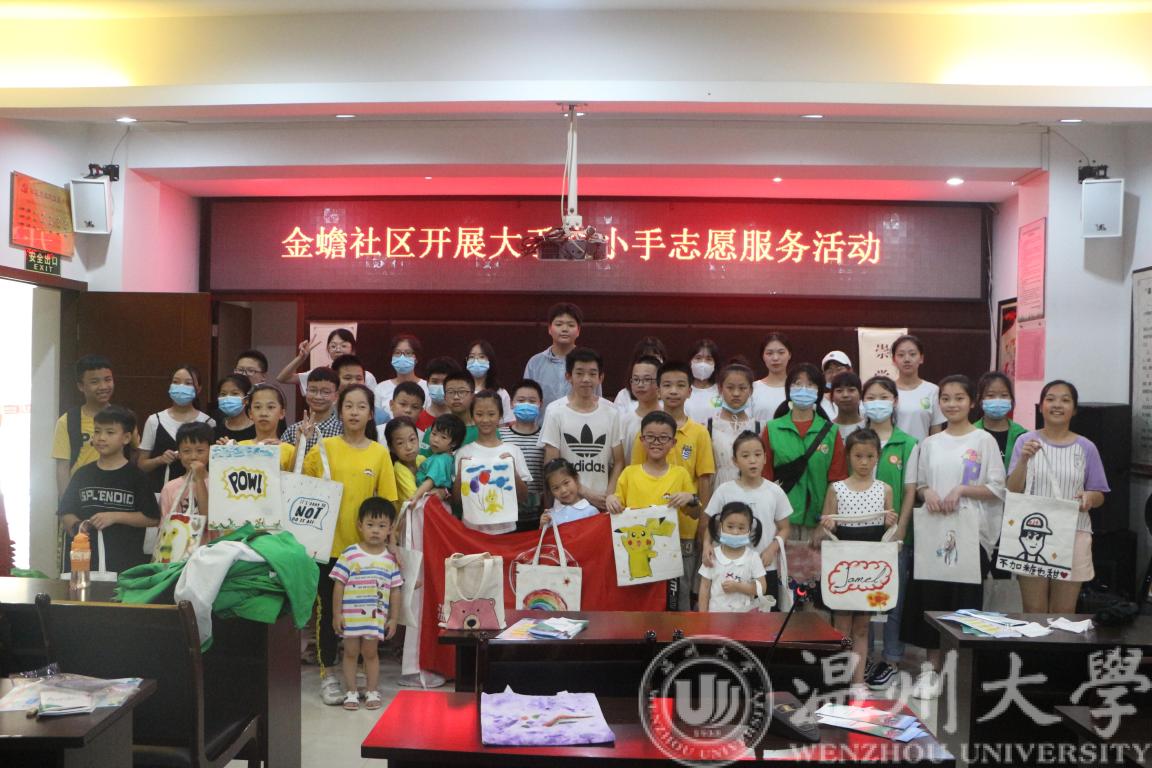 随着经济的发展与社会的进步,环境问题也愈发的严重,解决能源浪费和环境污染问题刻不容缓。为响应“绿色环保,低碳生活”的号召。7月14日,beat365在线唯一官网绿芽暑期实践队来到瓯海区金蟾社区,举办了以“环保布袋DIY”为主题的手工创意活动。