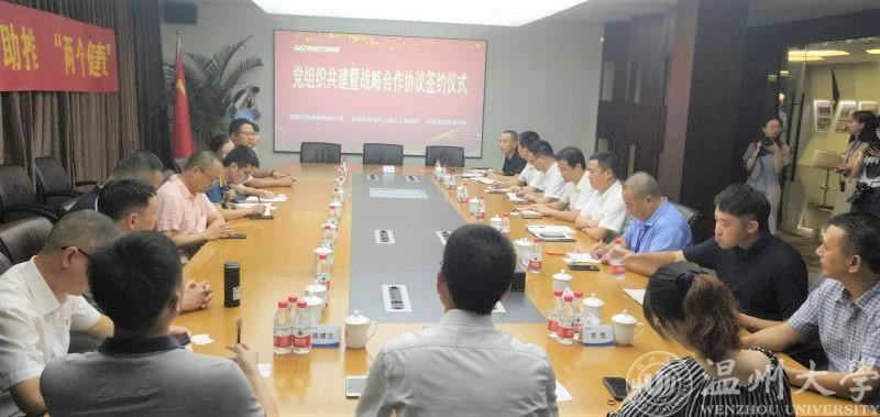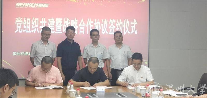 为加强基层党组织建设,全面发挥基层党组织的引领作用,2020年8月7日下午,beat365官网电子系教工党支部与星际控股集团有限公司党支部、中国电信鹿城分局总支部的“党组织共建及战略合作”签约仪式在星际控股集团举行。出席会议的三方人员有学院院长汪鹏君、学院党委书记李方强及电子系教工党支部代表,中国电信温州分局政企部主任潘震苞、中国电信鹿城分局局长兼党委书记王浙江、副局长兼纪委书记林斌及党员代表,星际控股集团陈序、总裁金铭勇及相关部门负责人。鹿城区委组织部副部长叶俊杰、鹿城区人社局局长刘玉和、鹿城区经信局总工程师史思等鹿城区相关部门的领导应邀到场。