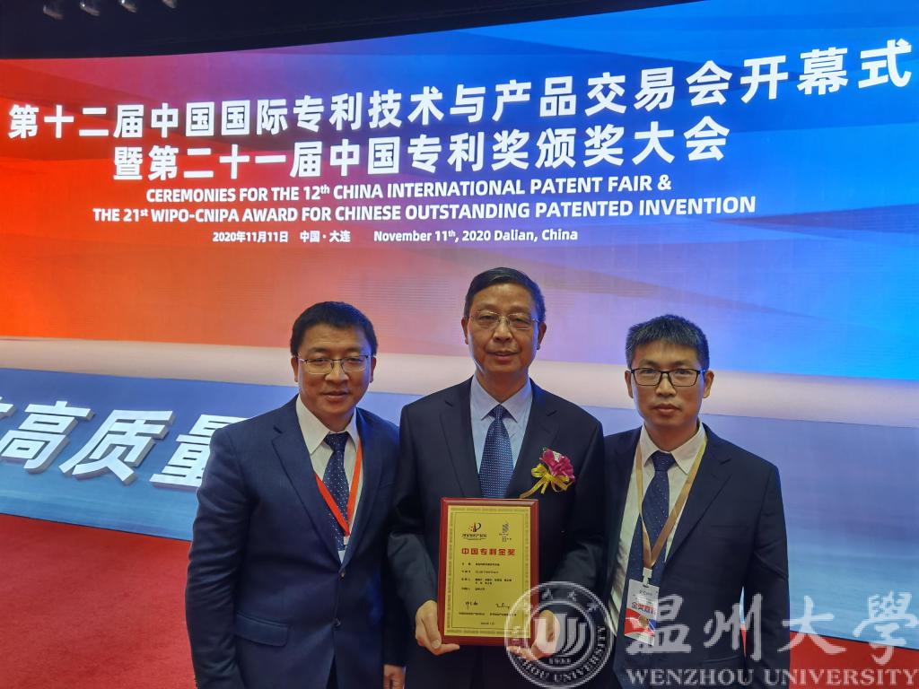2020年11月11日上午,由中国国家知识产权局、世界知识产权组织共同主办的第二十一届中国专利奖颁奖大会在大连举行。本次大会的主题是“知识产权引领经济高质量发展”。国家知识产权局局长申长雨,世界知识产权组织中国办事处主任刘华,辽宁省委副书记、辽宁省省长刘宁等领导出席了会议。世界知识产权组织(WIPO)总干事邓鸿森发表了视频致辞。本次大会仅对30项中国专利金奖进行颁奖。我校beat365在线唯一官网戴瑜兴教授前往领奖。