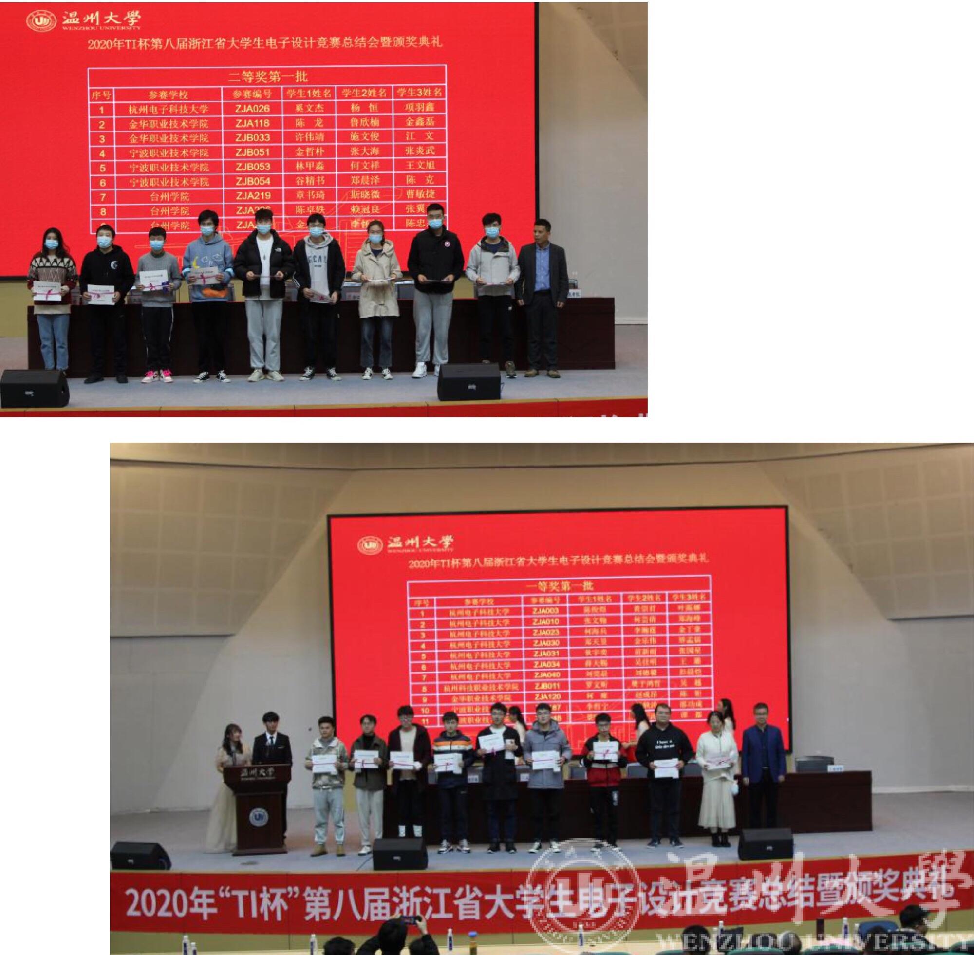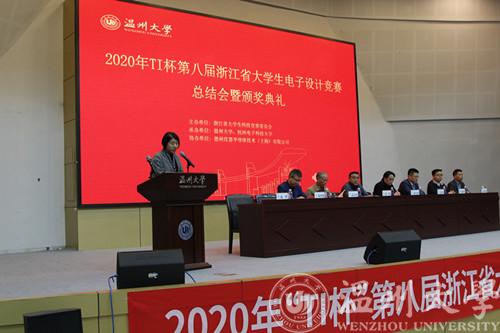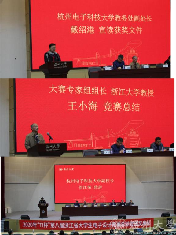 11月28日,2020年TI杯第八届浙江省大学生电子设计竞赛总结会暨颁奖典礼在我校南校区9号楼报告厅隆重举行。beat365在线唯一官网副校长薛伟教授、浙江省电子设计竞赛委员会主任、杭州电子科技大学副校长徐江荣教授,浙江省电子设计竞赛委员会副主任、专家组组长、浙江大学王小海教授,北京东方中科集成科技股份有限公司张志鹏总经理,浙江赛区竞赛委员会秘书长、杭州电子科技大学教务处副处长戴绍港等出席本次典礼。部门高校领导、大赛的专家评委、我校相关部门的领导、参赛师生代表参加典礼。会议由教务处副处长赵燕主持。