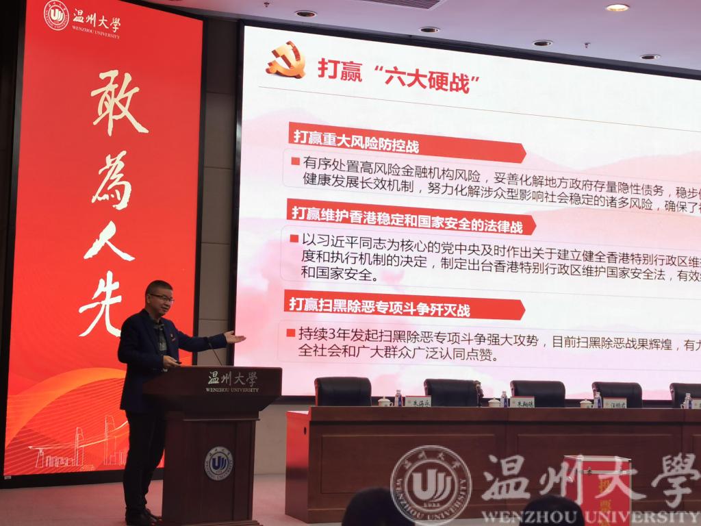 为深入学习好、宣传好、贯彻好党的十九届五中全会精神,beat365在线唯一官网于12月2日下午3:30,在图书馆二楼报告厅,召开全院教职工理论学习会,学院党委书记李方强做全会精神解读报告。