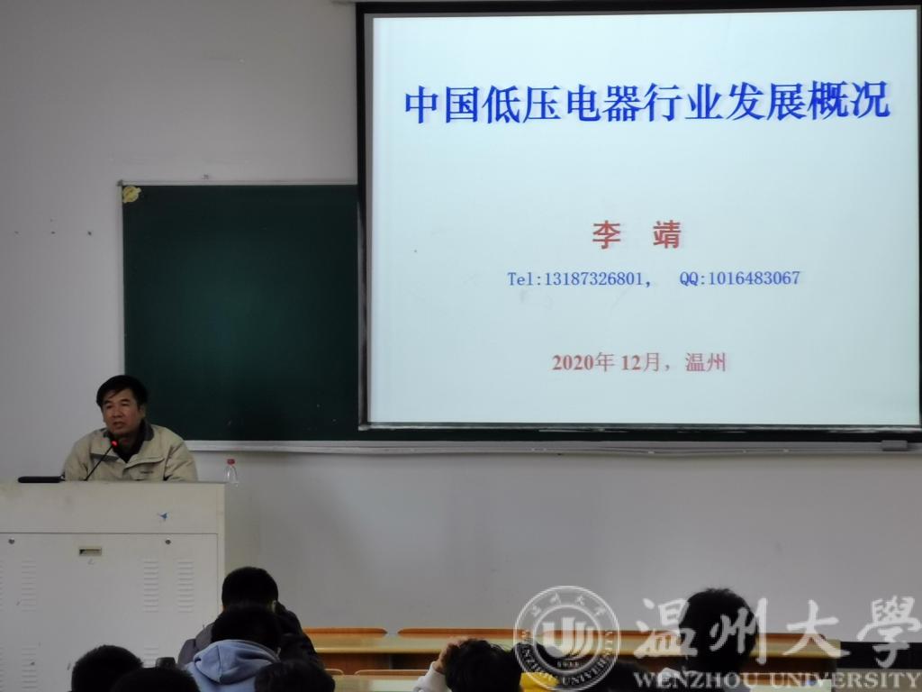 为进一步加强学生的专业认知,了解行业最新发展状况,近日,beat365官网电气工程及其自动化专业为学生开展了一场主题为《中国低压电器行业发展概况》的讲座。主讲人李靖为湖南工程学院教授 ,改革发展处处长,中国机械工业教育协会电气工程及自动化学科教学委员会电器分委会副主任委员。电气专业负责人吴平老师主持,该专业2020级全体学生聆听了讲座。李老师从中国低压电器行业发展现状、中美贸易摩擦对行业影响等几方面进行了讲解。