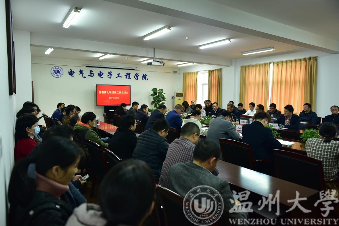 方建敏在反馈报告中对电气电子学院进行了总体评价,指出2019年6月至2020年10月期间,学院认真贯彻落实学校三大目标与七大战略,新增了中国专利奖等一系列重要奖项,顺利通过工程教育认证,成立智能锁具研究员和乐清工业研究院等。同时指出巡察中发现的问题:包括学院落实立德树人的根本任务举措力度不够、师资力量薄弱、人才梯队有待加强、教师在就业指导方面引路人作用发挥不够、学院监督体系不健全、师生理论学习自觉性不够、基层支部建设有待加强等、院务公开执行不到位等。最后方建敏给予了学院几点建议与具体要求:包括坚强党的建设、深入理论学习;突出政治建设、推进主题教育成果转化;落实从严治党、明确二级党委责任。